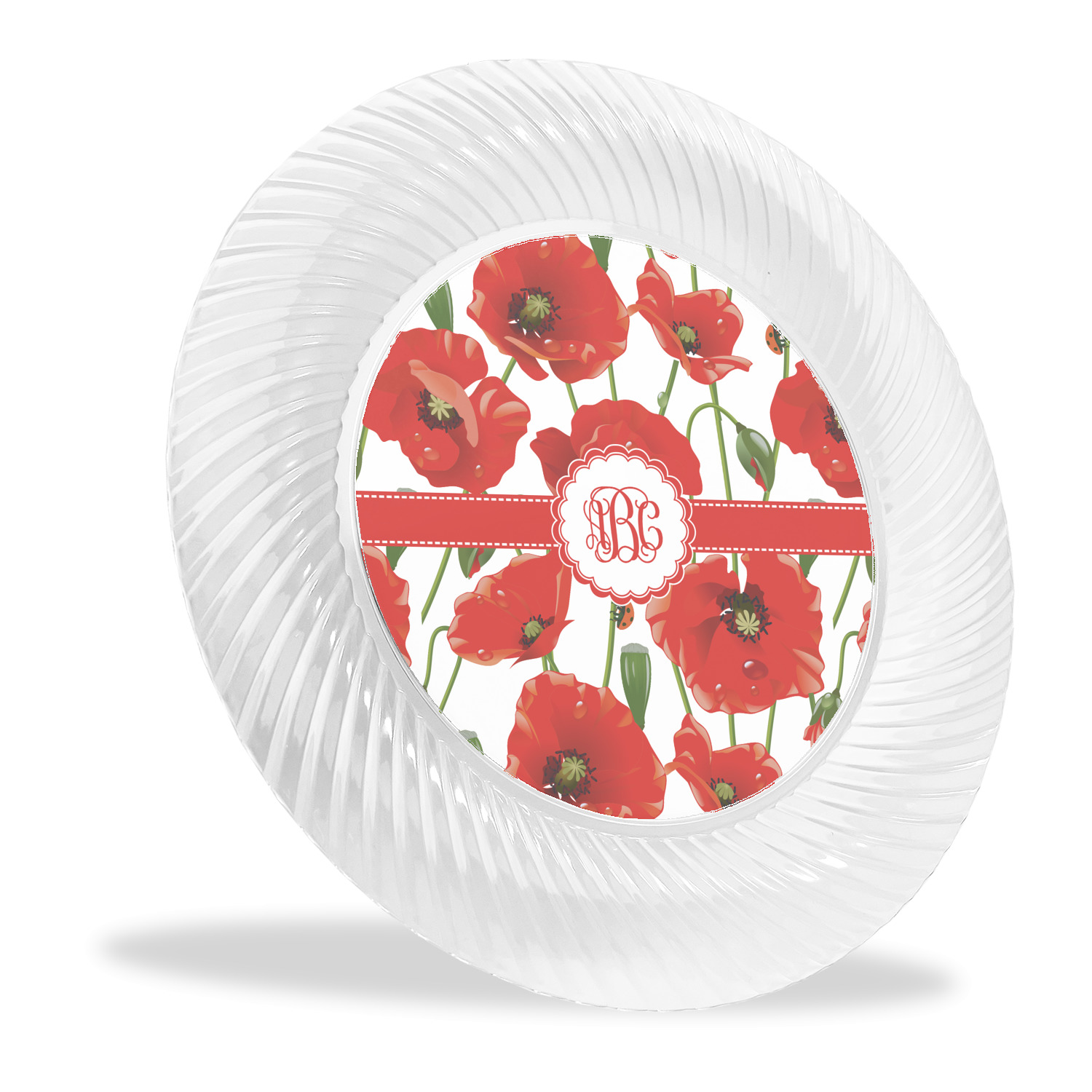 Made from a beautiful clear plastic plate as a base, your design is printed to the underside of the plate. The outside of these disposable plates has a classic swirl texture to it for a high quality look and feel.