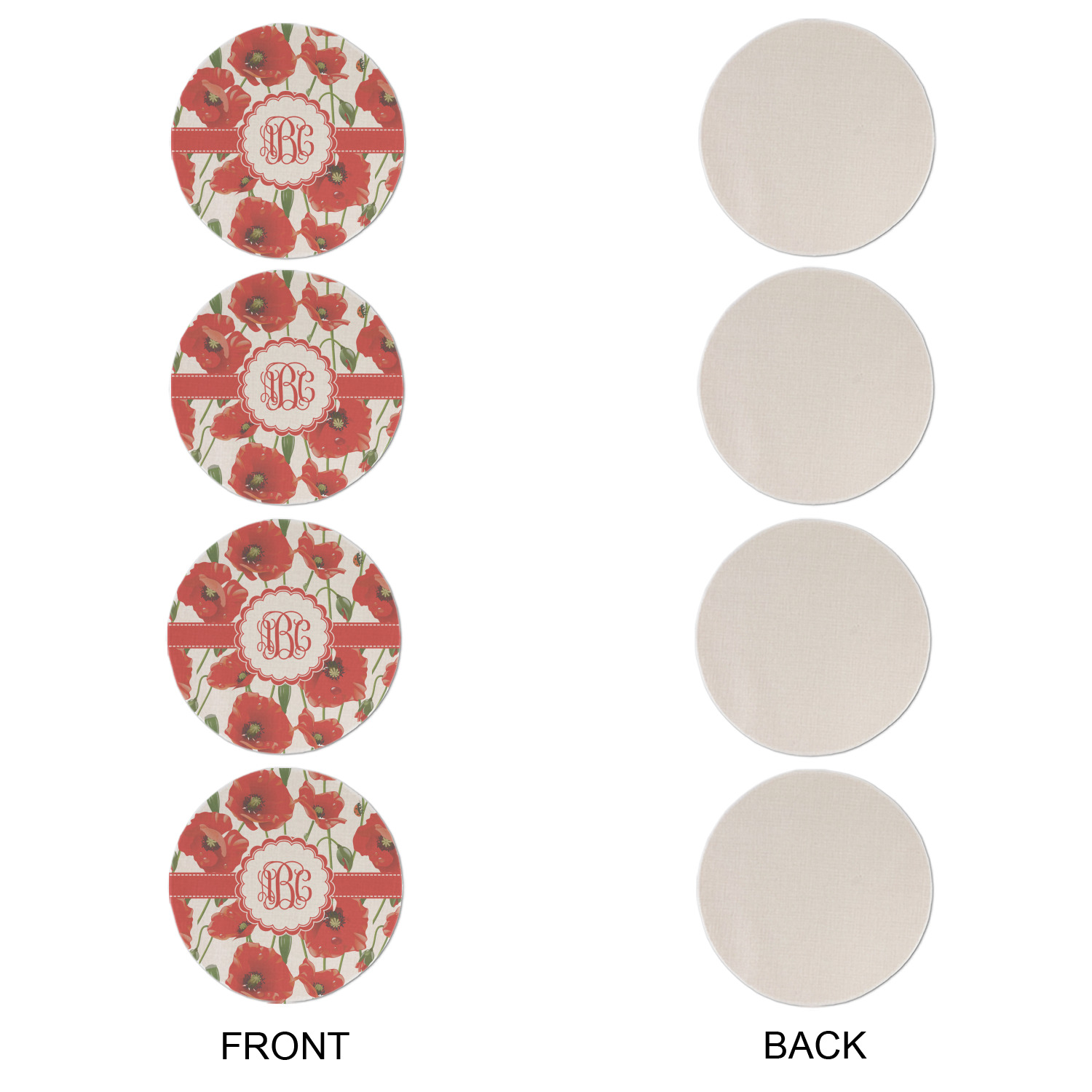 A scalloped label rests in the center of the poppy field, the perfect place for the personalization of your choice.