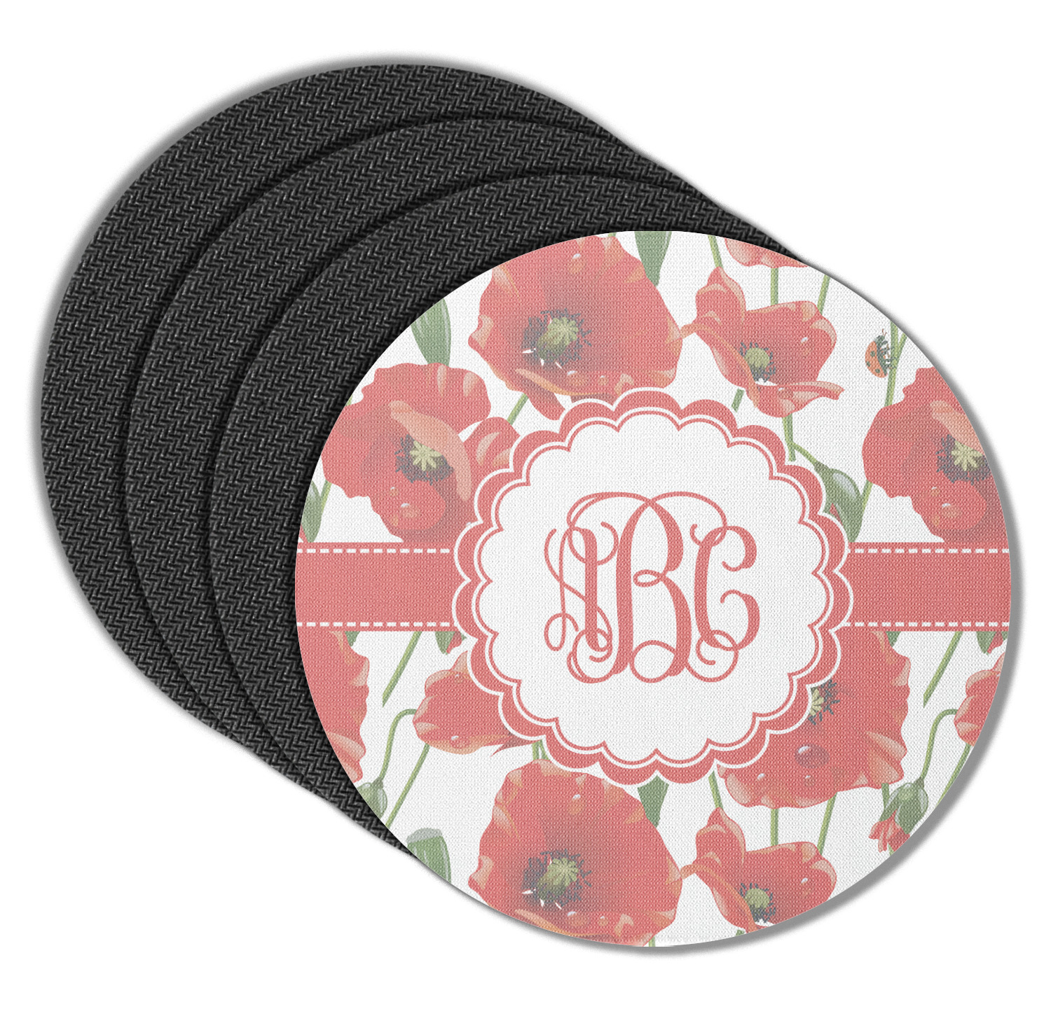 These drink coasters have a smooth, polyester top and a textured, rubber backing on its bottom. The non-slip rubber backing underneath works to keep any spills at bay. At 4 by 4 by 0.25 inches thick, these custom coasters are a suitable size for most drinkware. Your personalization is displayed atop the face of the cup coaster. We sell these rubber coasters in two different shapes: square and round. You can buy each shape as singulars or as a set of 4.