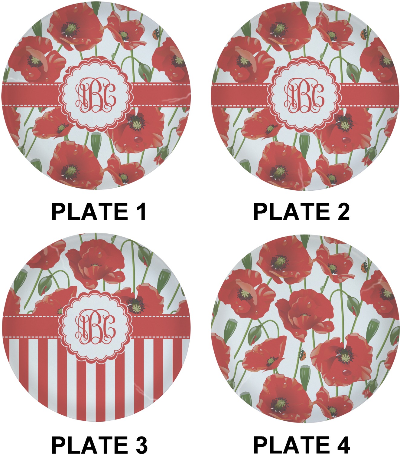 A scalloped label rests in the center of the poppy field, the perfect place for the personalization of your choice.