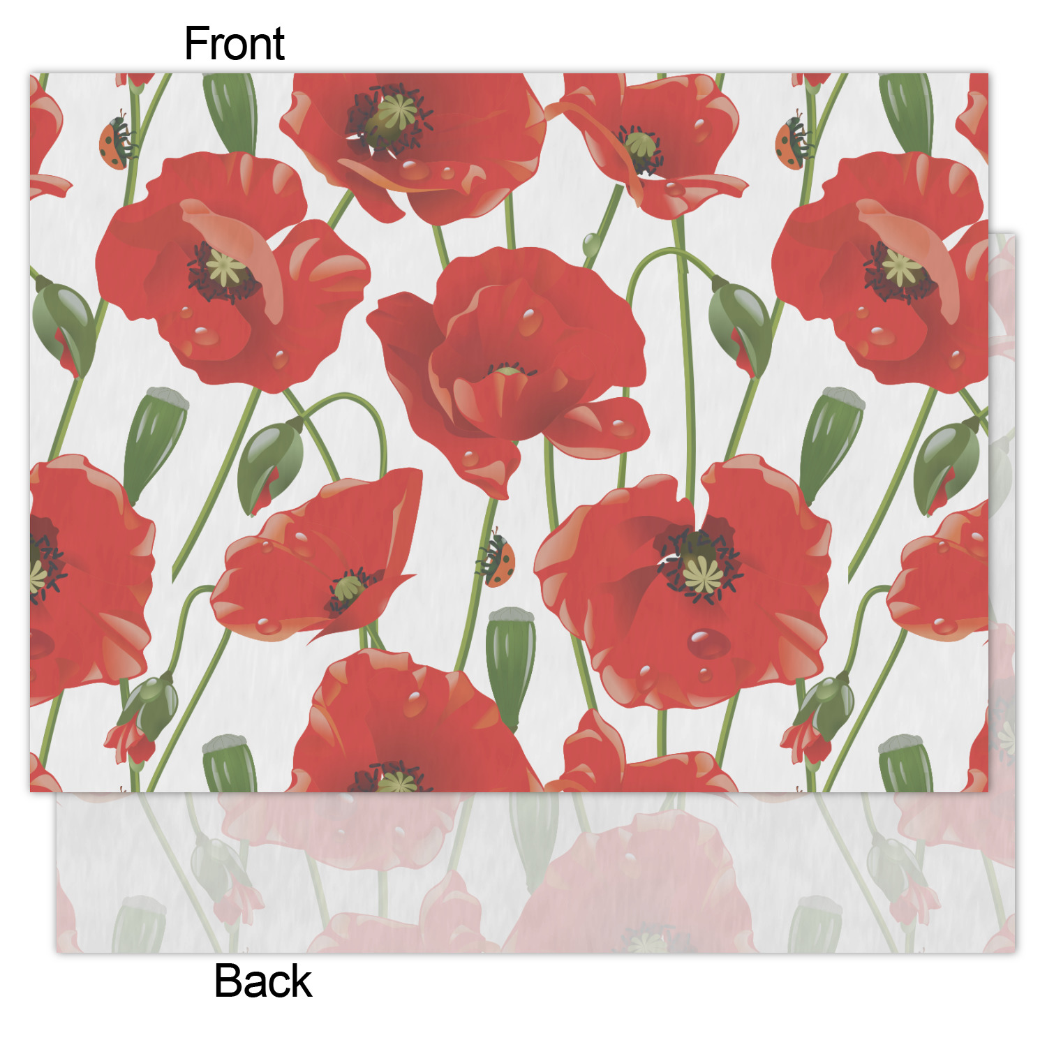 A scalloped label rests in the center of the poppy field, the perfect place for the personalization of your choice.