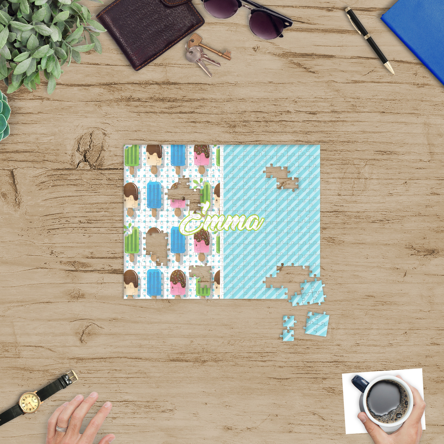 You can also upload your logo or art that you or your kids drew. To create more challenging jigsaw puzzles, you can create a pattern from with your logo or artwork. You can also add other elements such as text or personalization.