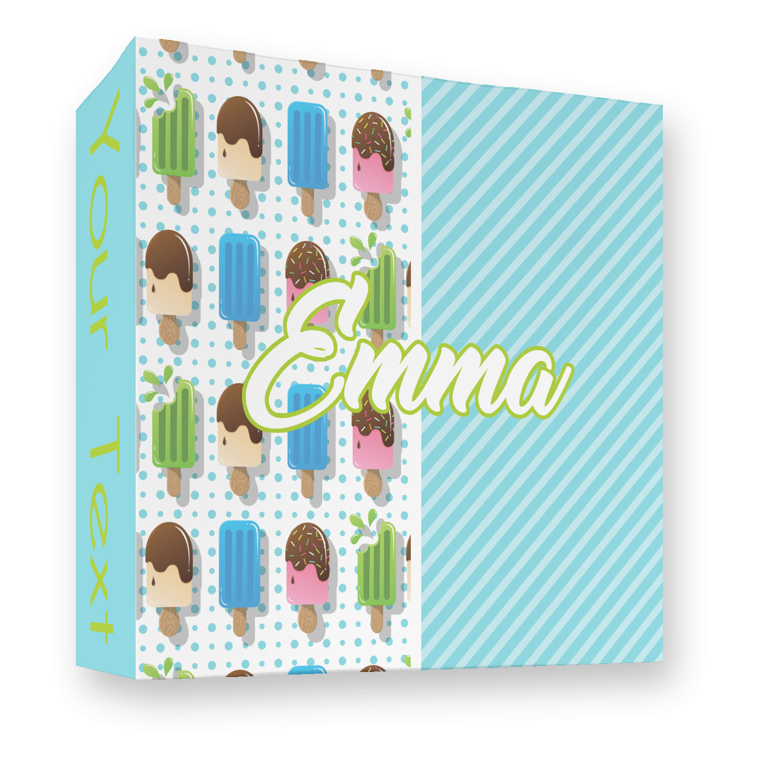 Made from a sturdy cardboard base with a full high quality canvas textured vinyl wrap with the design of your choice. Unlike our standard 3-ring binder with the full wrap design your artwork wraps from the front and back and into the inside of the binder.