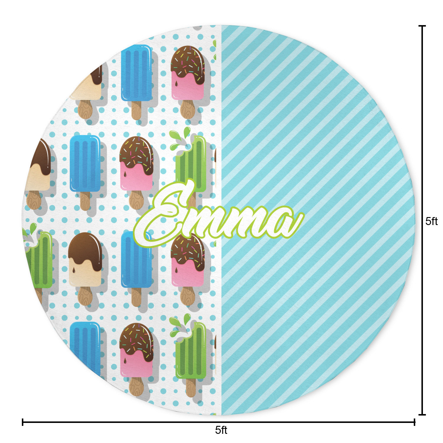 Our custom round area rugs and rectangular area rugs are both velvety soft and smooth, with a short pile, beautiful sewn corners and edges on the poly chenille face. We recommend adding an anti-slip mat under your round area rug to prevent it from sliding when under foot when placed on hard or smooth surfaces.