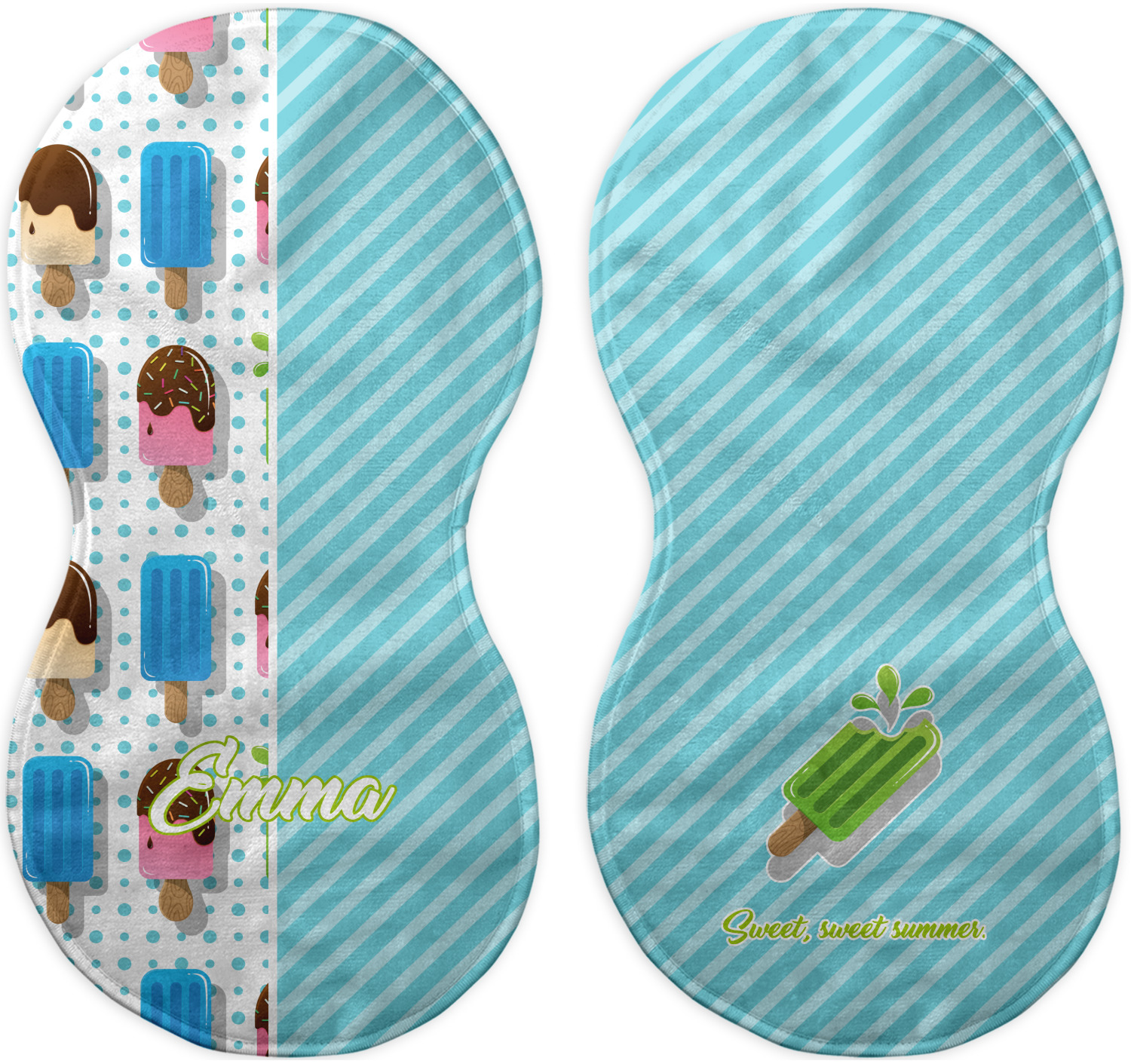 Choose your baby burp cloth from our two styles - Fleece (rectangular) or Microfiber Velour (peanut shape). The lightweight and absorbent design makes each burp cloth multipurpose; use them as a burp pad, a lap pad, a changing table, or a spare cloth to clean up any baby mess. Your customization is displayed across the front with baby-safe ink to ensure extra comfort with a white backing.