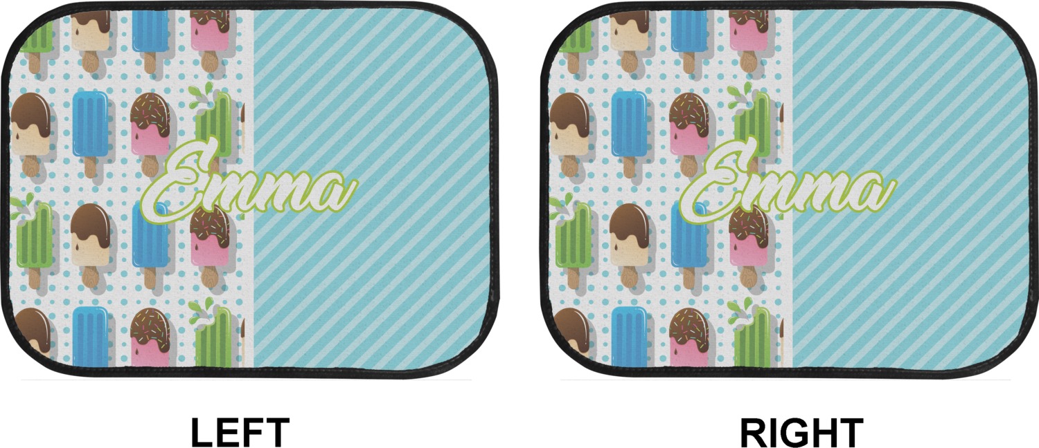 We craft our auto floor mats mats from polyester, apply a black finish to the edges, and lined at the bottom to prevent slippage. These mats protect your floors from grass, mud, and any accidental spills. We display your personalized design on the front face of each mat. The sizes of these car floor liners are standardized to provide a versatile fit for all vehicles. The front rows car mats measure at 17 by 26.5 inches, while the back rows measure at 17 by 13 inches. We sell three packages of car floor mats. You can purchase a pair of front row car mats, a pair of back row car mats, or a set of front row and back row car mats. To make an informed purchase, we recommend measuring the surface area of your car floors.