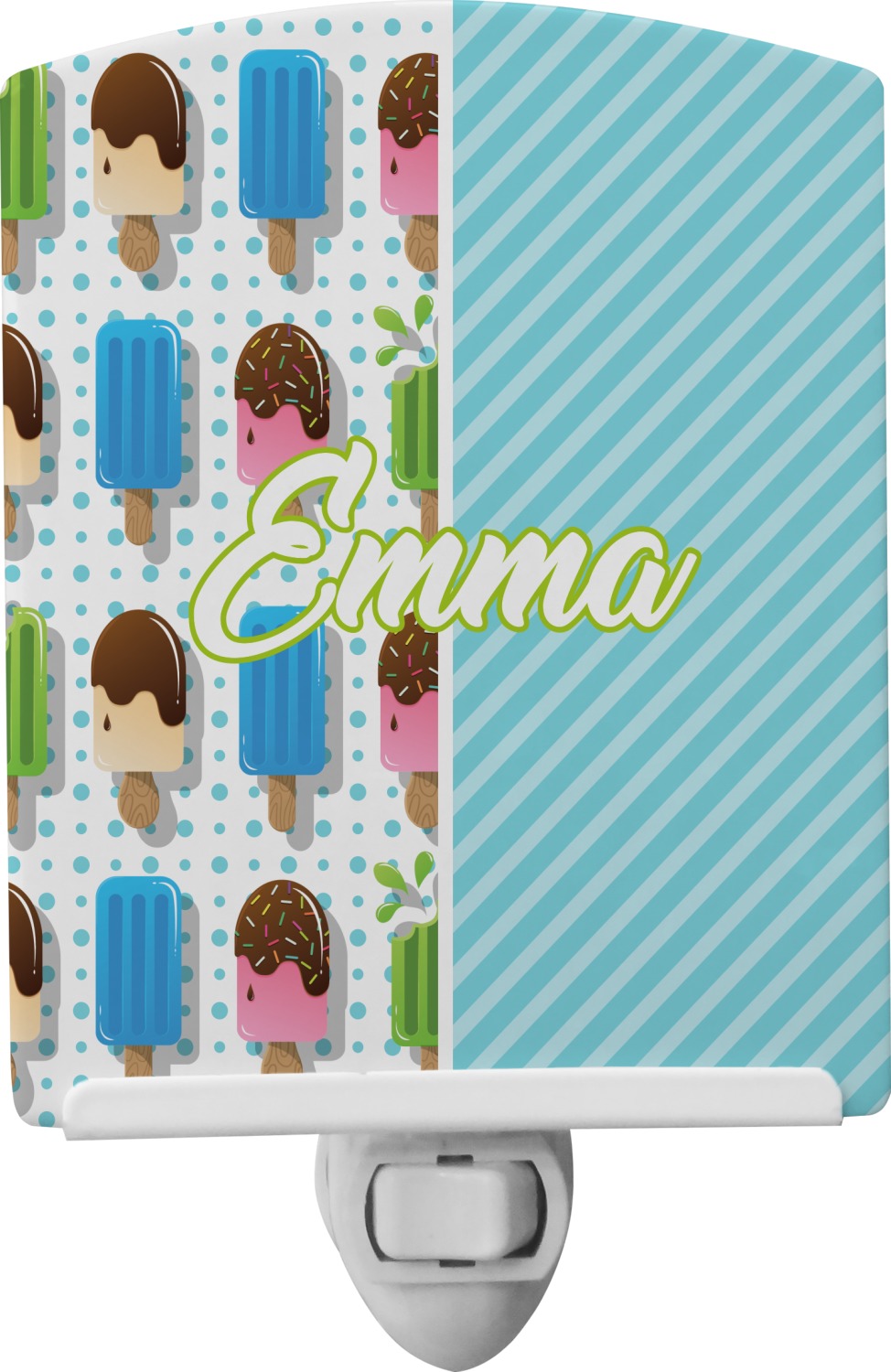 This baby night light is made of durable, ceramic plate that displays your customized design beneath a glossy finish. When this light is turned on, your personalization glows in the dark and offers a bit of light to any room or hallway. The plate also rotates easily. This plug-in night light has a white base with a convenient on and off switch. Additionally, the rotating plug allows you to plug them into US sockets horizontally or vertically. If your child outgrows the design years into the future, you can easily unscrew the plate and use it as a plain nightlight. With your purchase of this outlet night light, we include a 7-watt bulb.