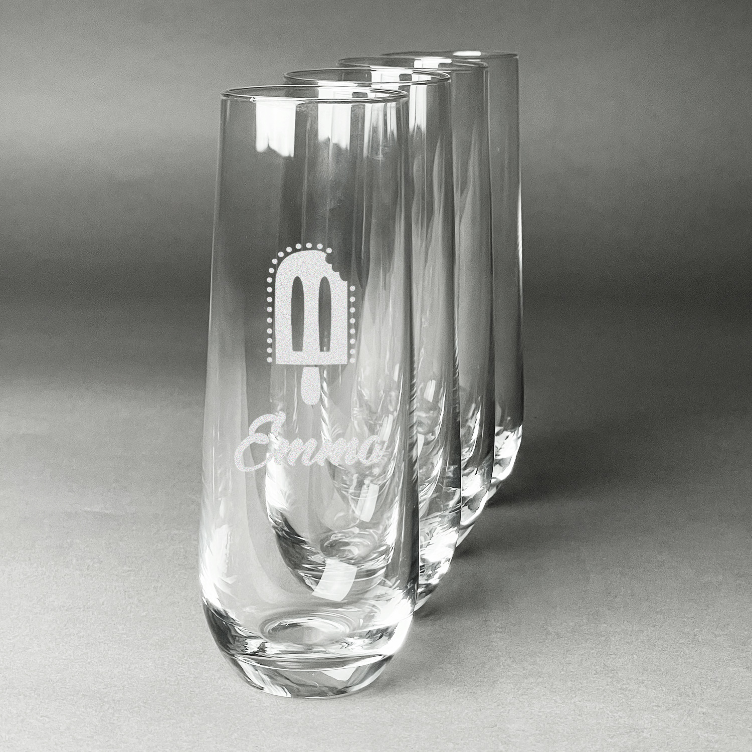 Design your custom stemless champagne flutes and we will then laser engrave your unique design on them for you. Whether they are a special gift for a bride and groom, for your New Years Eve party, or a bachelorette party you are sure to be able to add a custom personalized touch to make them perfect for the occasion.