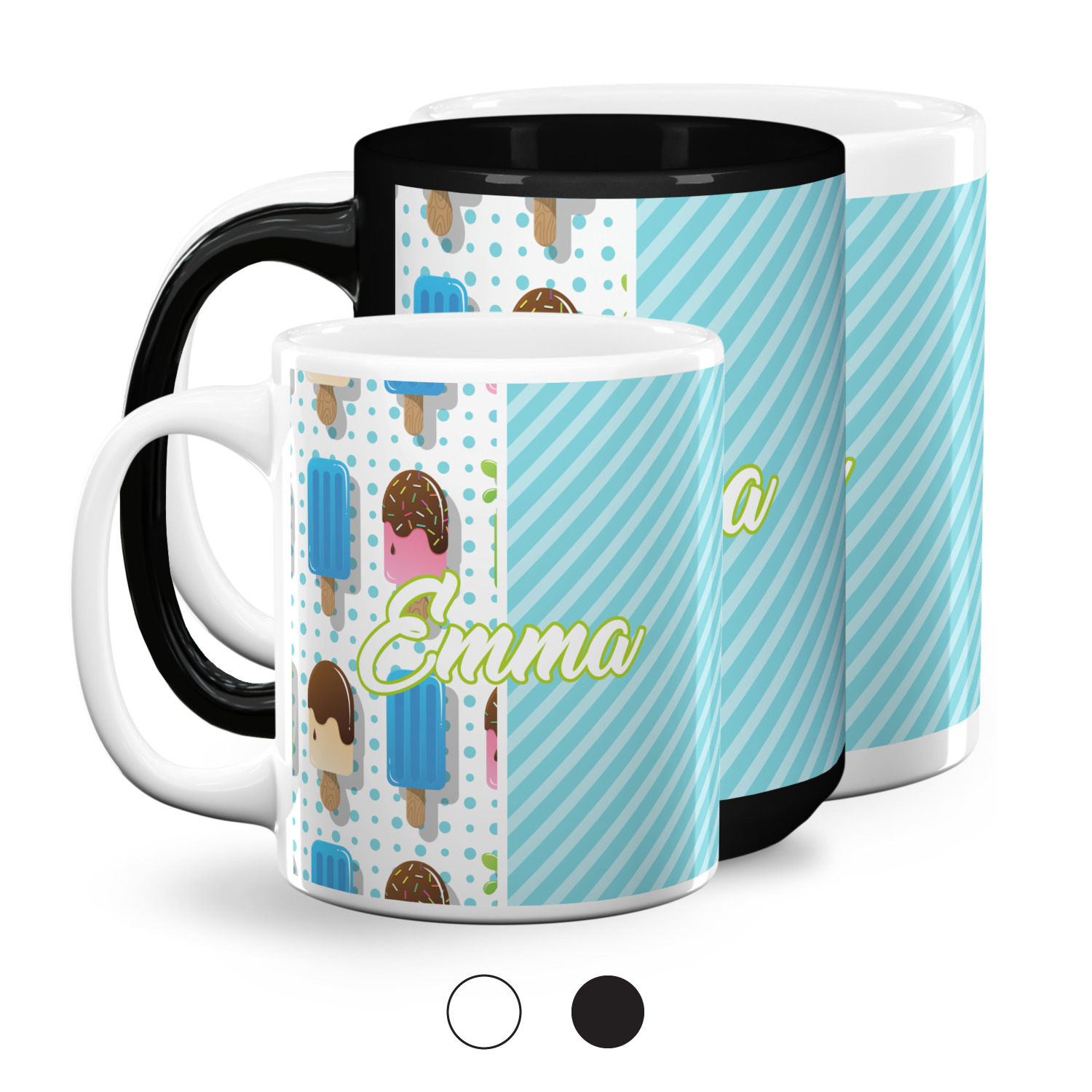 Our ceramic mugs have your design or photo printed along the surface with a gloss finish. The ceramic material of our mugs is dishwasher and microwave safe so you can reheat your tea or coffee if needed! We offer two different base colors with multiple mug sizes. The white ceramic mugs come in three size options - 11 oz., 15 oz., and 20 oz. Our black ceramic mugs are sold in either 11 oz. or 15 oz. sizes.