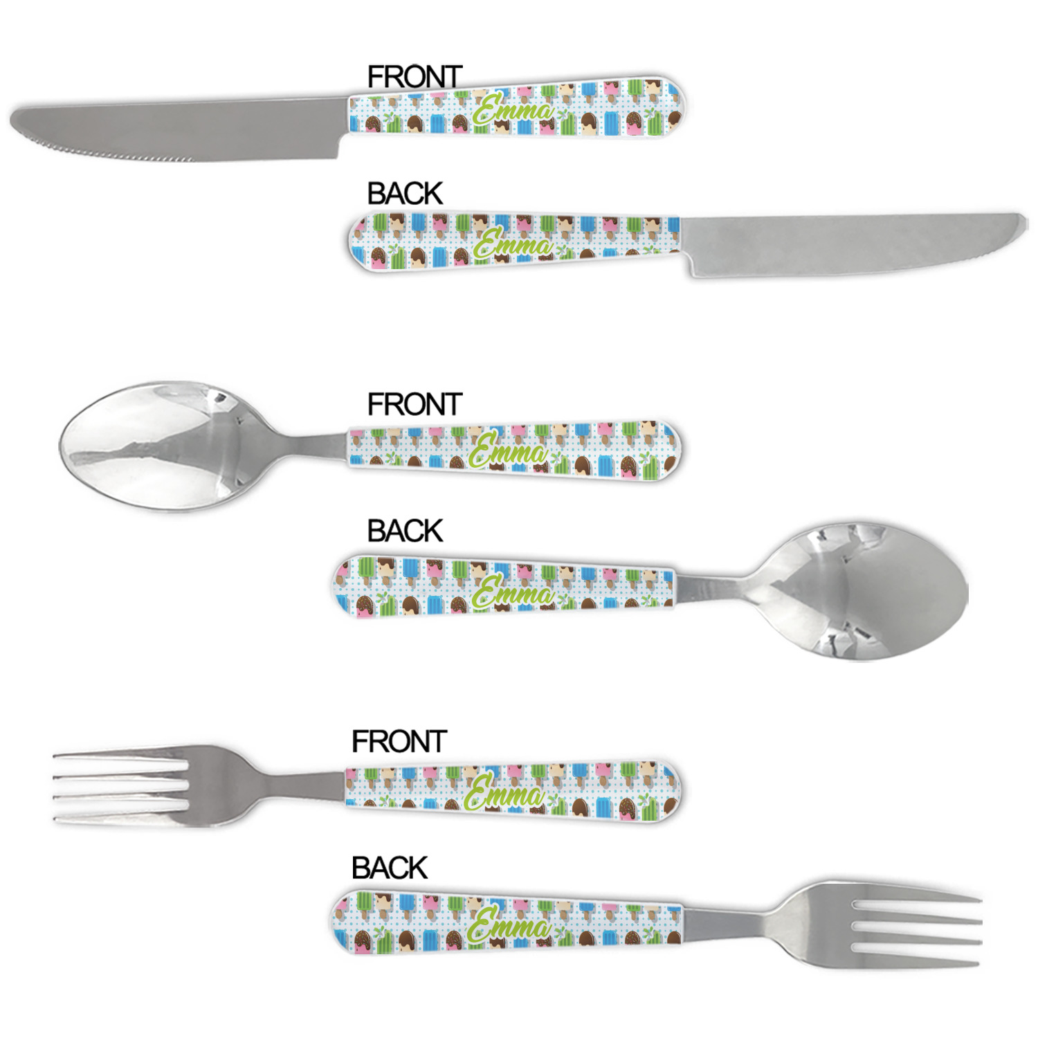 One of those items we all use on a daily basis and never give it much thought - cutlery. Having your own customized set of cutlery adds that special touch. A great addition to our custom plates and drinking pint glasses, this flatware set can be made in the same patterns to match.