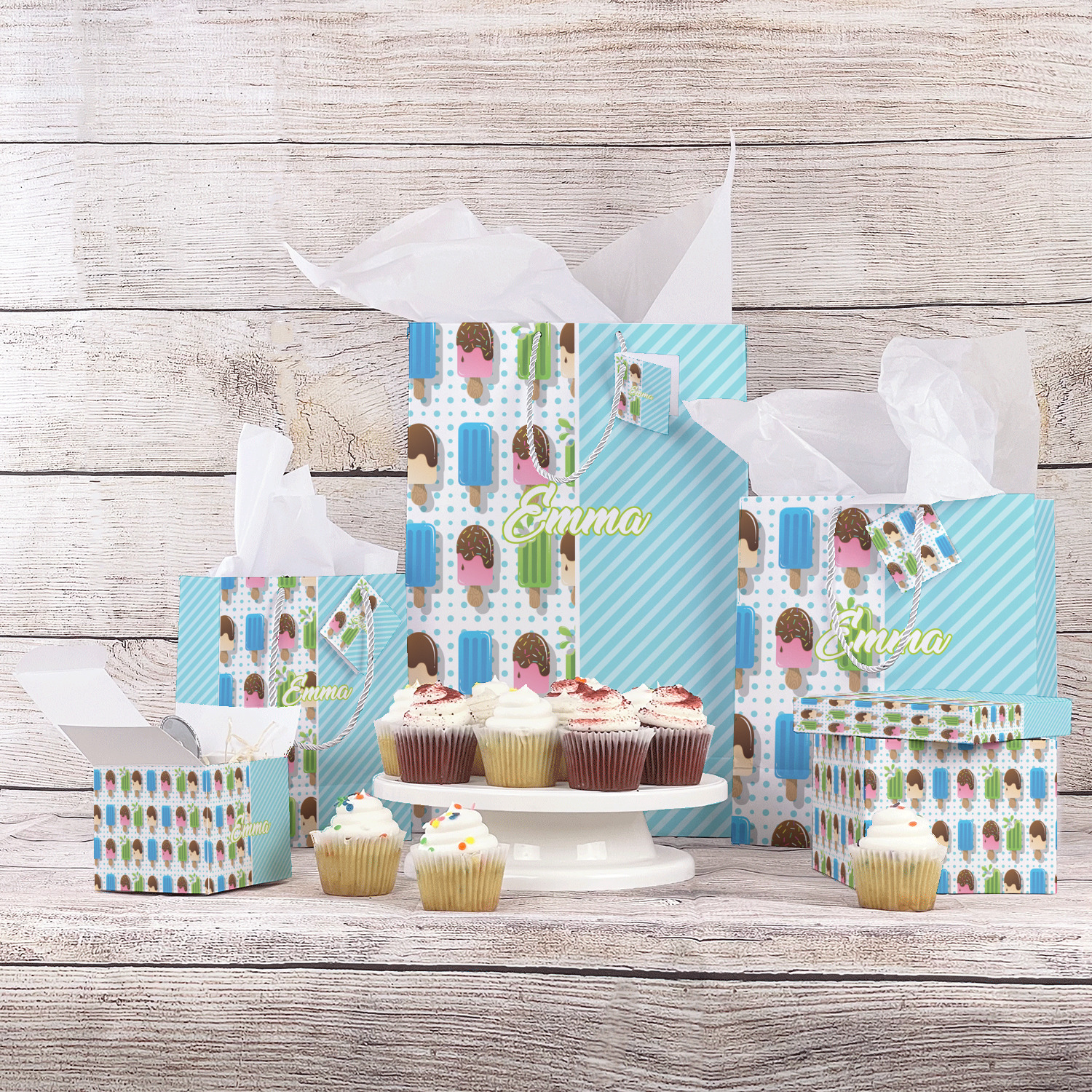 | Size (Varies By Option) | Small Gift Bag (7" x 4" x 9") Medium Gift Bag (10" x 5.25" x 12") Large Gift Bag (12" x 5.5" x 18") |
