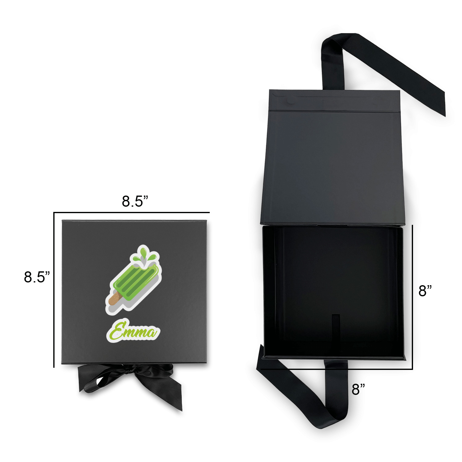 Design your own using our design library and we will print your artwork onto the lid of the gift box. When the box is closed the ribbons can be tied to secure the lid and add to the elegant look of these gift boxes.