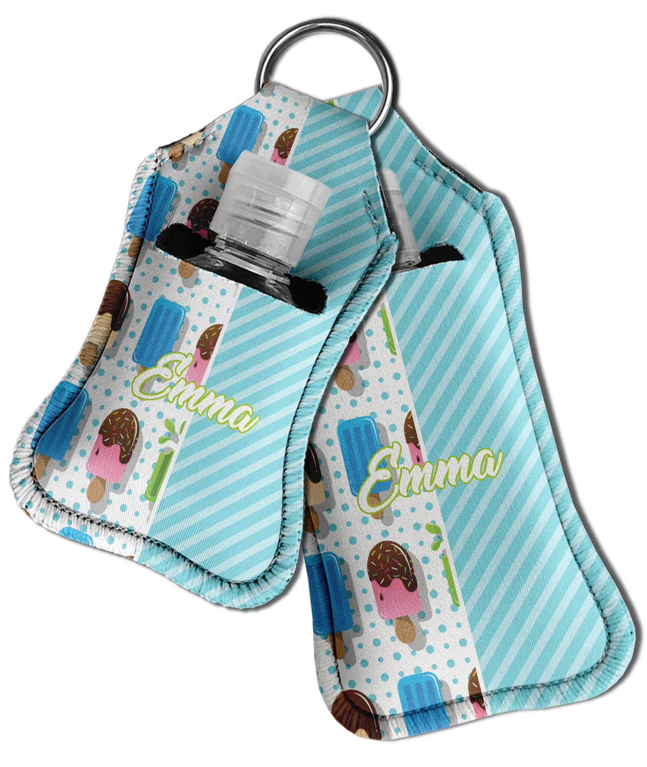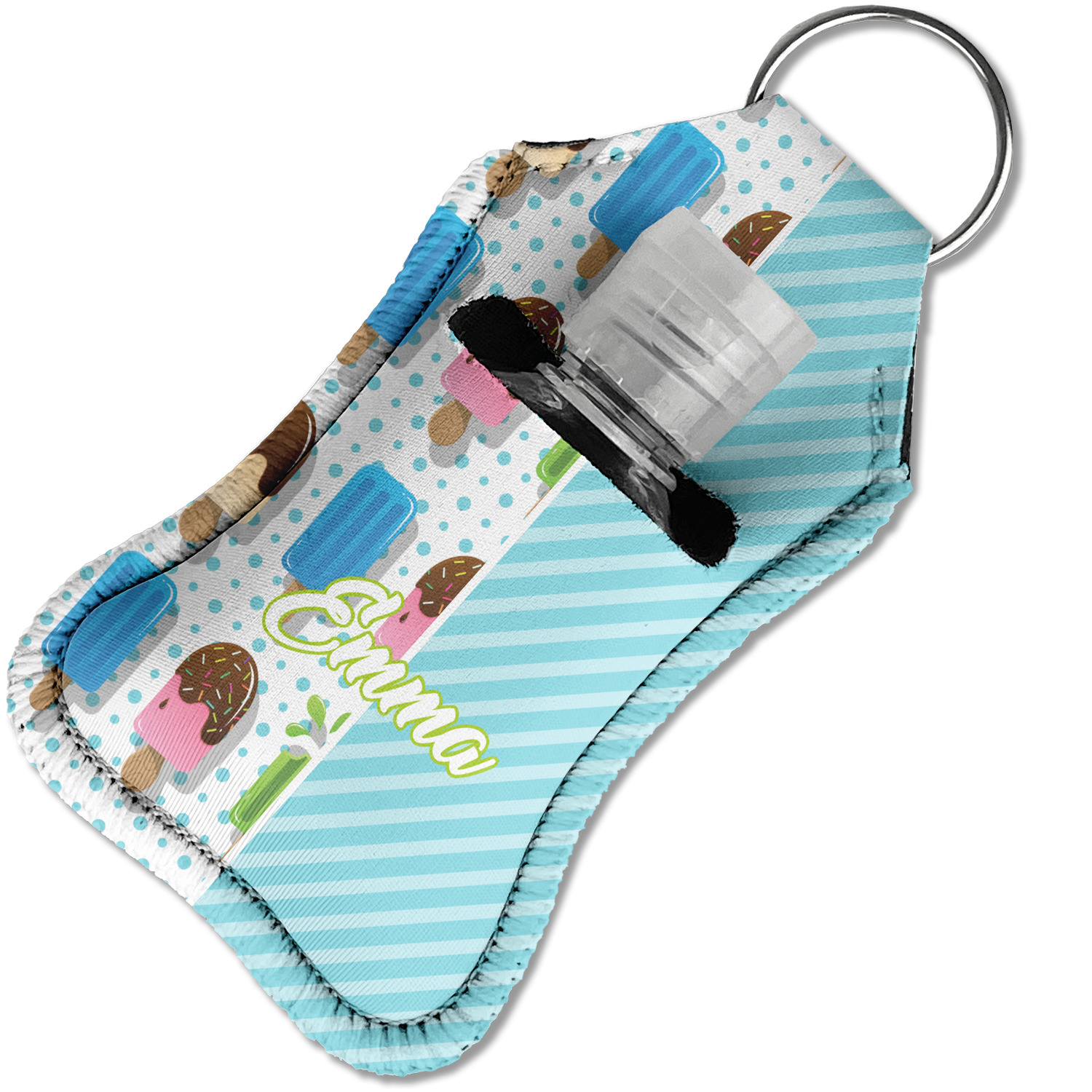 Each hand sanitizer holder comes with its own empty travel-sized, refillable hand sanitizer sure to fit snug in your customized sanitizer case! Our hand sanitizer cases are a durable, yet soft neoprene material sure to last any daily activities or travel agenda. Customize and personalize a hand sanitizer bottle holder with one of our two sizes - small (4.25" x 2.25") or large (5.5" x 2.5"). Each travel sanitizer holder comes with a keyring for attachment on bags, keys, or more!