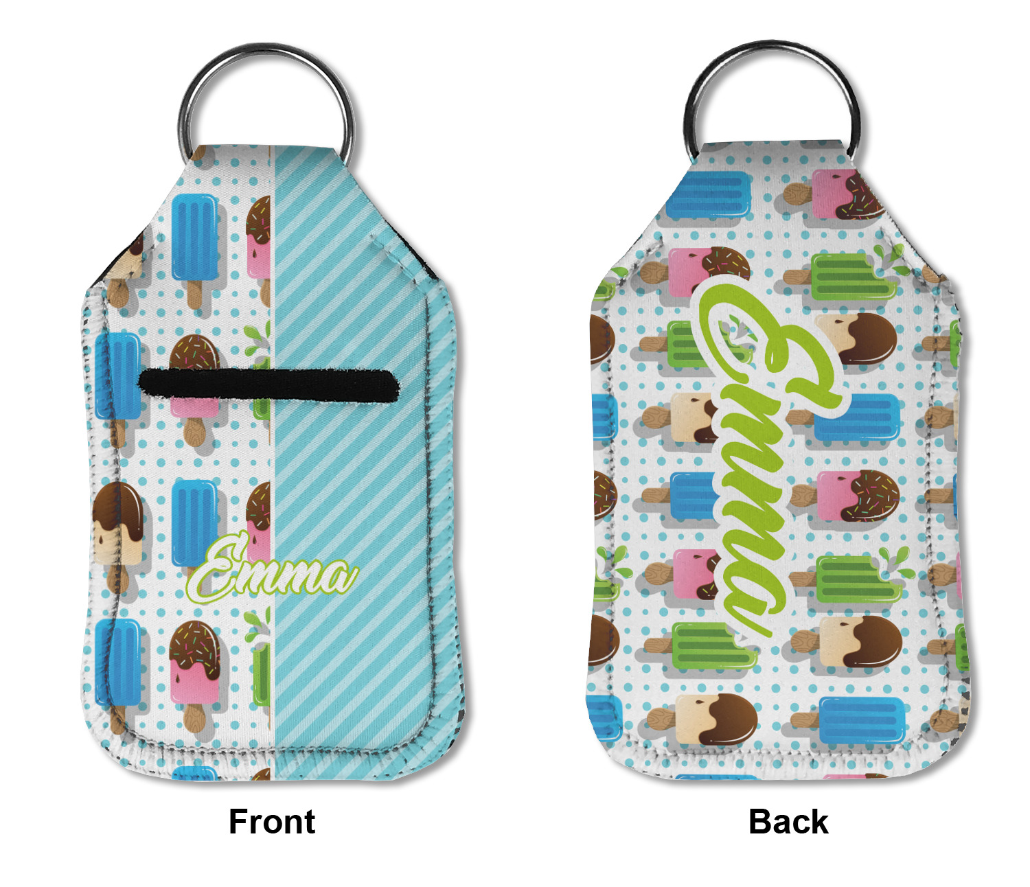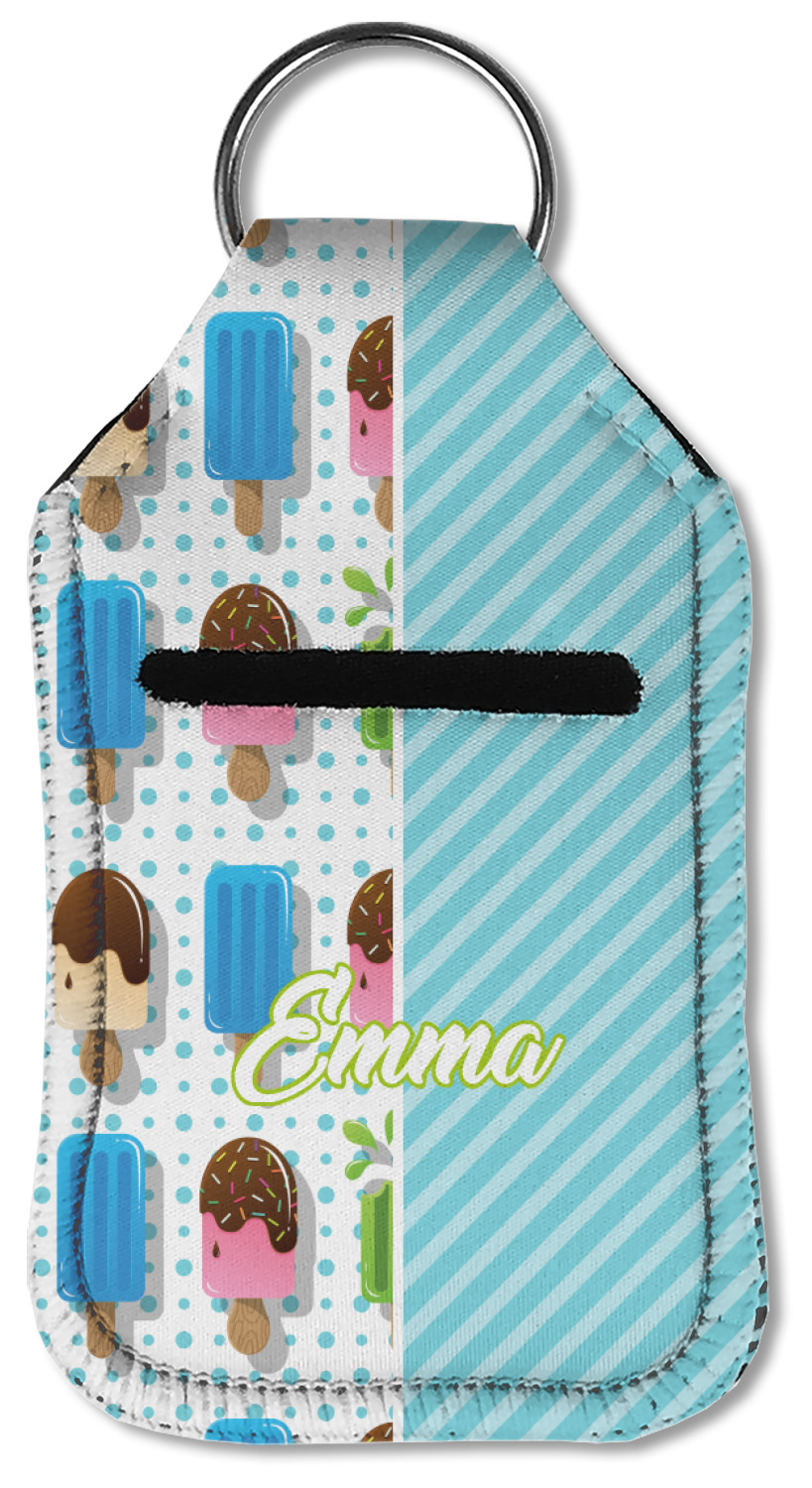 Each hand sanitizer holder comes with its own empty travel-sized, refillable hand sanitizer sure to fit snug in your customized sanitizer case! Our hand sanitizer cases are a durable, yet soft neoprene material sure to last any daily activities or travel agenda. Customize and personalize a hand sanitizer bottle holder with one of our two sizes - small (4.25" x 2.25") or large (5.5" x 2.5"). Each travel sanitizer holder comes with a keyring for attachment on bags, keys, or more!