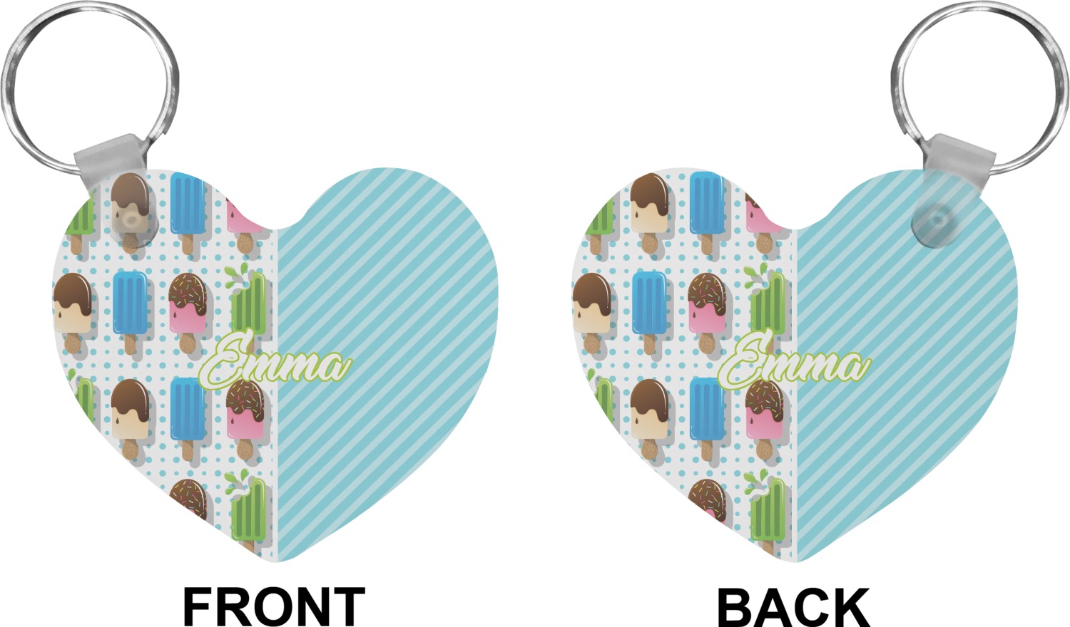 Our personalized keychains attach to the included metal, split key ring with a plastic, removable snap. Since a metal ring is included with your purchase, you have the liberty to keep your keys together on the ring, with or without your unique keychain. We offer this keychain in three different shapes: circle, heart, or diamond. We print your personalized design(s) on both sides of the key chain, and the surface has a glossy, reflective finish that only emphasizes your design. Each keychain is approximately 2.25 by 2.25 inches.