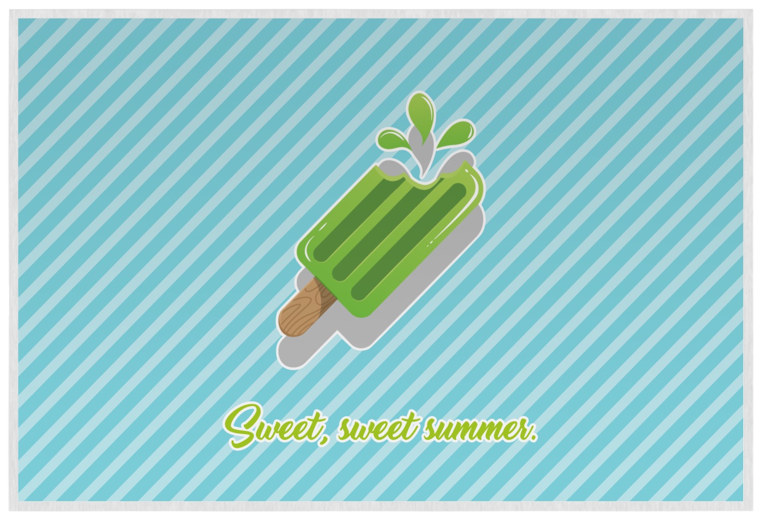 This design is a fun light teal, with pops of lime green and other bright colors. This design is split right down the middle so that you can have two fun patterns on either side The left half are four different kinds of popsicles that repeat in this cute design, with teal polka dots sitting behind them. On the other half is your fun slanted teal stripes pattern.