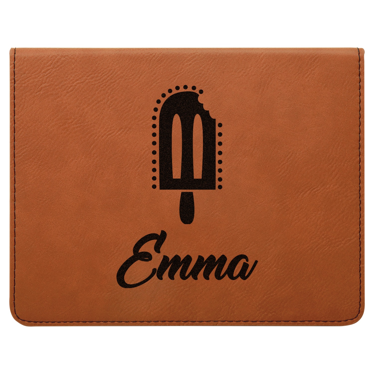 This set includes a wine stopper, pourer, drip ring, and a corkscrew! The exterior of the box is a gorgeous, cognac-brown leatherette, while the interior is covered in a black, velvety material. Four foam indentations, unique to the shape of the wine tool, are found at the bottom half of the box's interior. The tools fit snugly into each of their designated spots, and the foam material helps to protect the integrity of your tools. Each of the wine gadgets features a bamboo accent, with the location and style depending on the tool itself. We laser engrave your personalized design onto the lid of the box, which easily flips open and is secured closed by a small magnet. The wine accessories box measures at 7 by 5.5 inches in total.