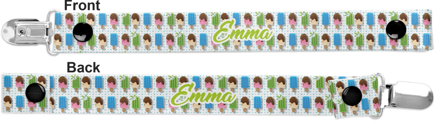 This personalized pacifier clip is the ideal size and measures at approximately 7.5 inches in length, when either end is snapped closed. On one end, you'll find a snap button. This button of your baby's pacifier holder is what can be attached to their pacifier to hold is securely in place. Simply open the snap, slip it through the pacifier opening, and snap it back into place. On the opposite end of this baby pacifier holder, you'll find a metal clip that can secure to a baby's collar or sleeve. This clip ensures that the strap stays in place, and that your baby's pacifier is always on hand.