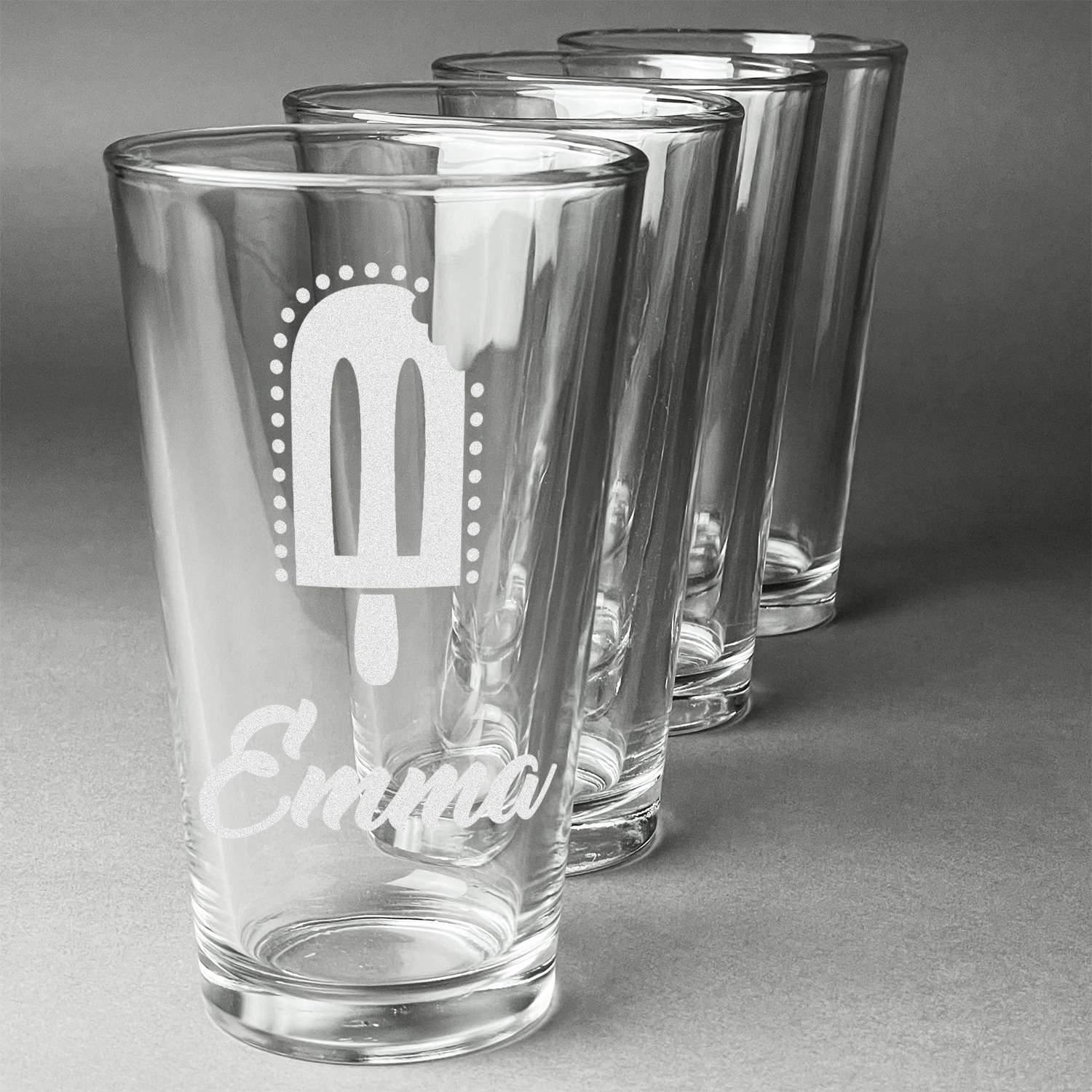 Available in a single glass or a set of 4 - each glass will be custom engraved with your design. Each glass holds 16 oz and measure 5.75"H x 3.5"W.