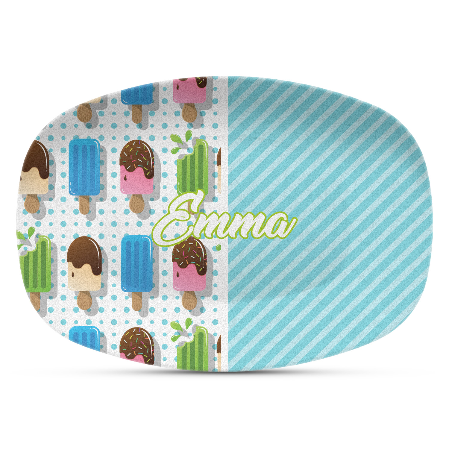 These serving platters are made from a composite, thermo-set, polymer plastic that gives it the versatility, durability, and weight of a melamine platter, without any of the downsides of melamine. These personalized platters, can withstand temperatures up to 250 degrees Fahrenheit, for up to 60 minutes. No harmful chemicals, such as BPA, formaldehyde, and DEHPs were used in the manufacturing of this product. This large serving platter measures at 14" x 10.25", and is spacious enough to hold any of your appetizers or bite-sized desserts. The platter exhibits your personalization across the entirety of its front.