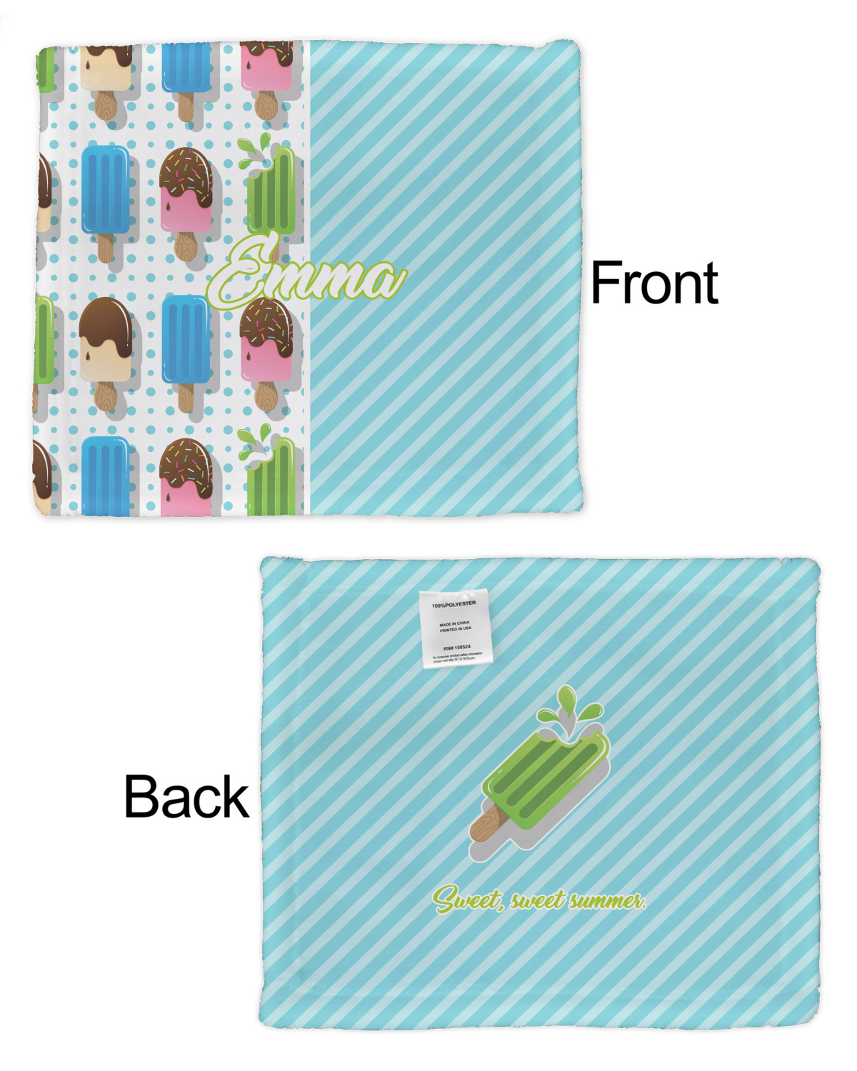 Our customized security AKA lovey blankets are available in 2 print styles - single sided or double sided. You can customize both the front and the back of the lovey security blankets. You have the option to choose different designs or the same design - the choice is yours.