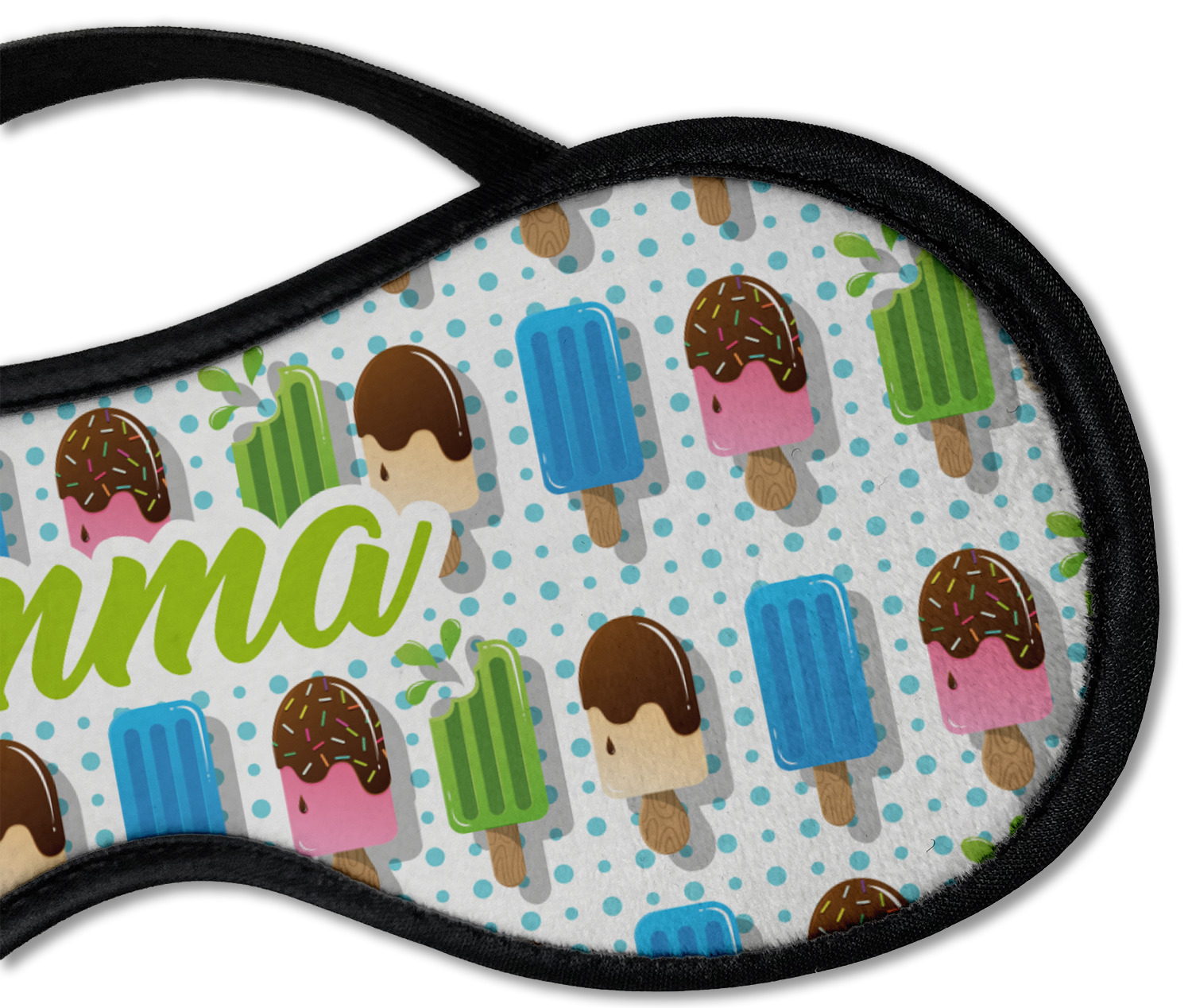 This eye mask has a super soft fleece on the back so that your face will feel snug. The front is personalized by you! There is a black elastic band that goes behind your head. The band is stretchy enough to be a one size fits most. The eye mask comes in 2 sizes: small for regular adult sizes and large for a larger area coverage. The black lining and elastic give it a nice finished look. You will never sleep or nap more comfortably than with this eye mask. These are great for napping when traveling or just at home!