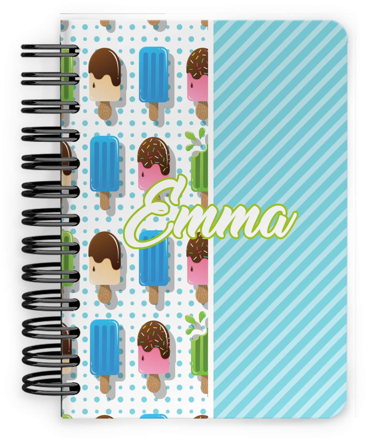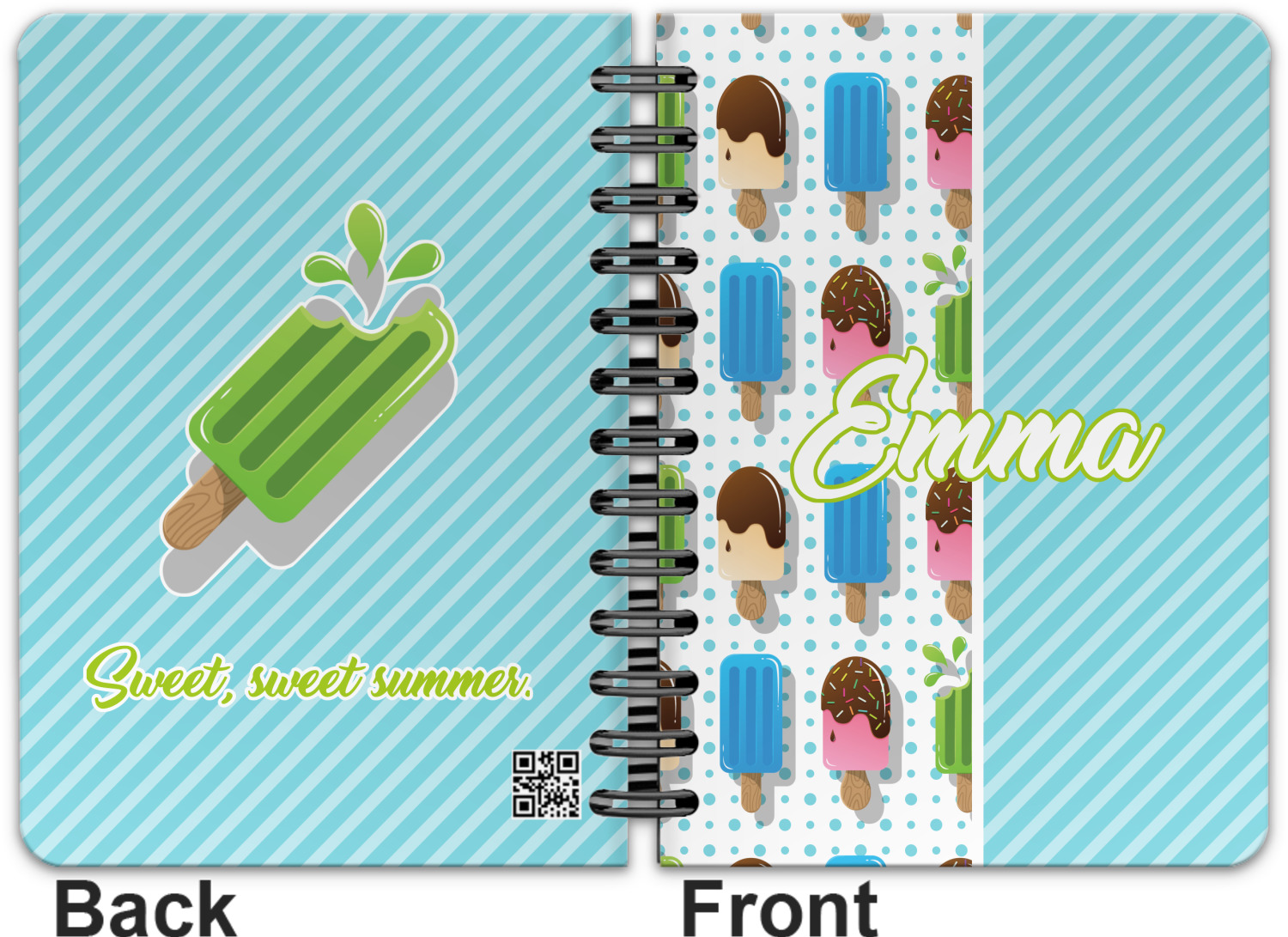 This spiral notebook includes 75 sheets of thick, ruled paper. The front and back of this custom notebook is made of a robust, laminate, plastic covering. We print your personalization on these two panels, underneath a glossy finish, which emphasizes the colors of your design. The two panels and the sheets of paper are held together by a sturdy, black coil. The paper within your bound notebook is perforated for easy, clean tearing.