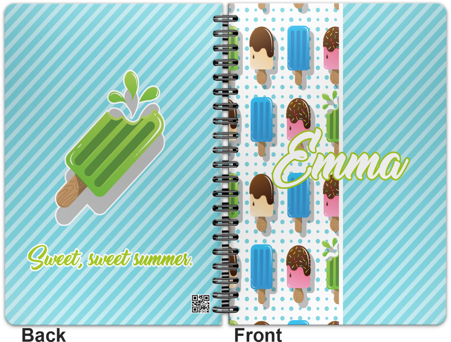 This spiral notebook includes 75 sheets of thick, ruled paper. The front and back of this custom notebook is made of a robust, laminate, plastic covering. We print your personalization on these two panels, underneath a glossy finish, which emphasizes the colors of your design. The two panels and the sheets of paper are held together by a sturdy, black coil. The paper within your bound notebook is perforated for easy, clean tearing.