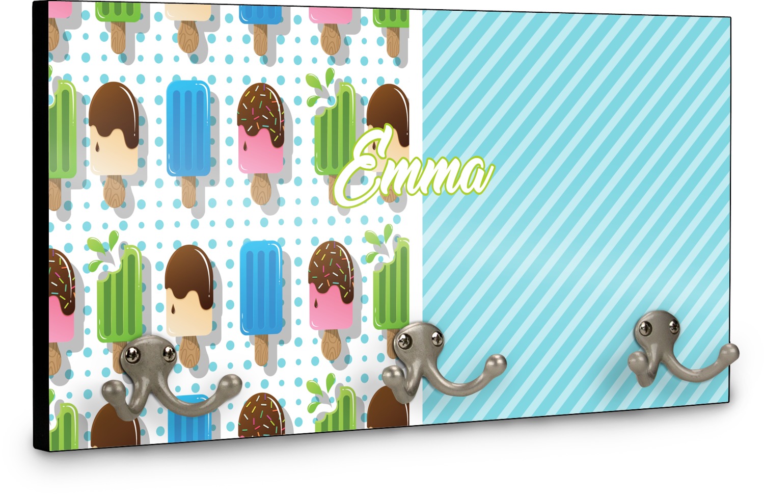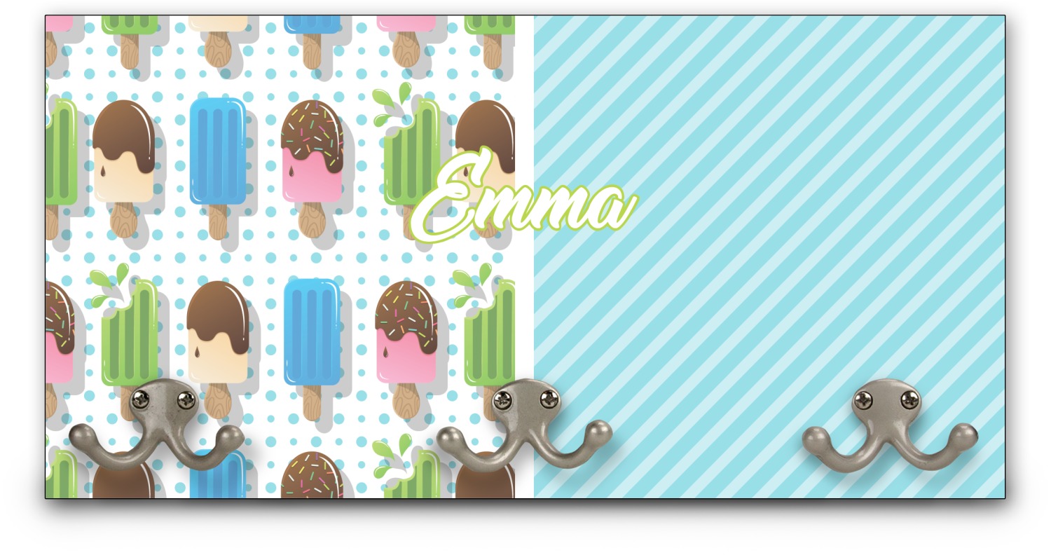This coat rack is the perfect way to add some personality to your wall or entryway. The board is made of a strong maple that is approximately 16" x 8". The three 2-prong hooks are a sturdy metal that have three screws attaching them to the board. Your design is printed right onto the front of the board while the back and sides are a simple black.
