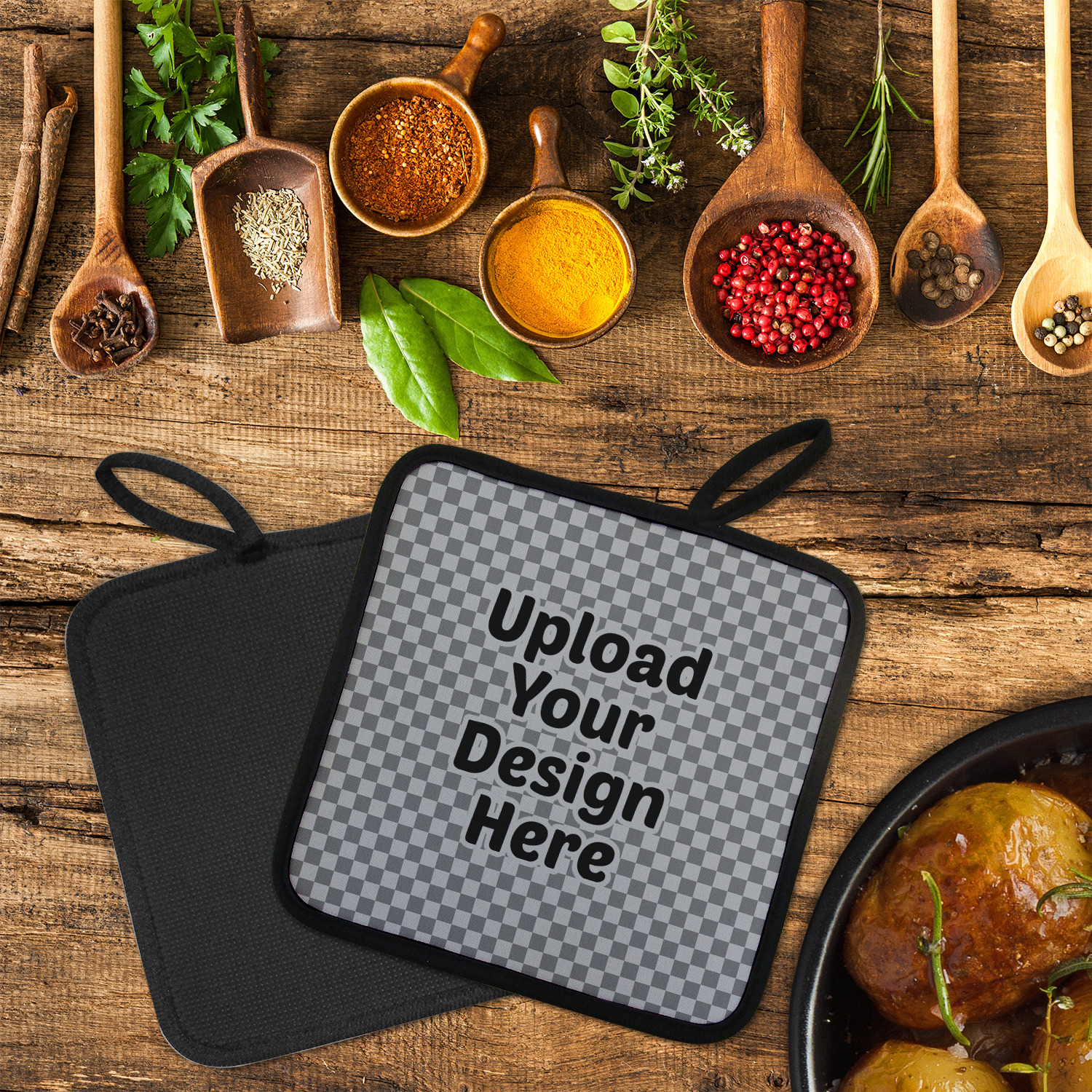 Shield your hands from the heat of freshly cooked dishes with one of our pot holders! These custom pot holders are the perfect way to add a splash of color and creativity to your kitchen, and yet are still incredibly functional!