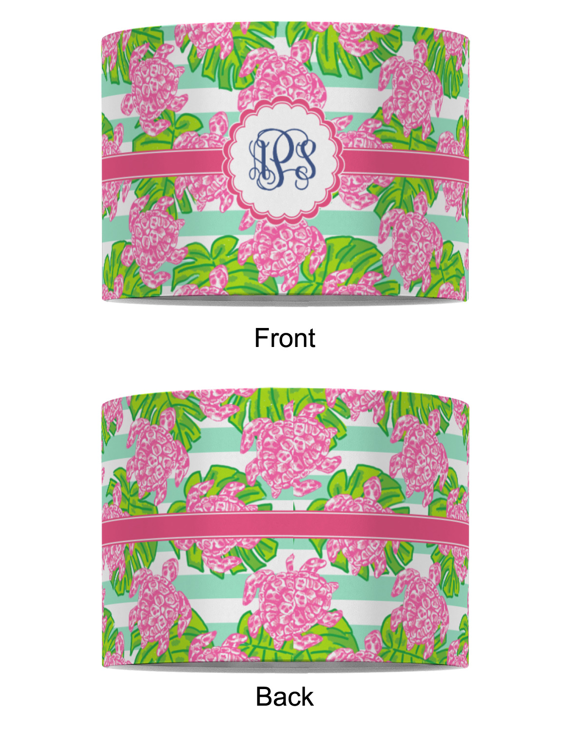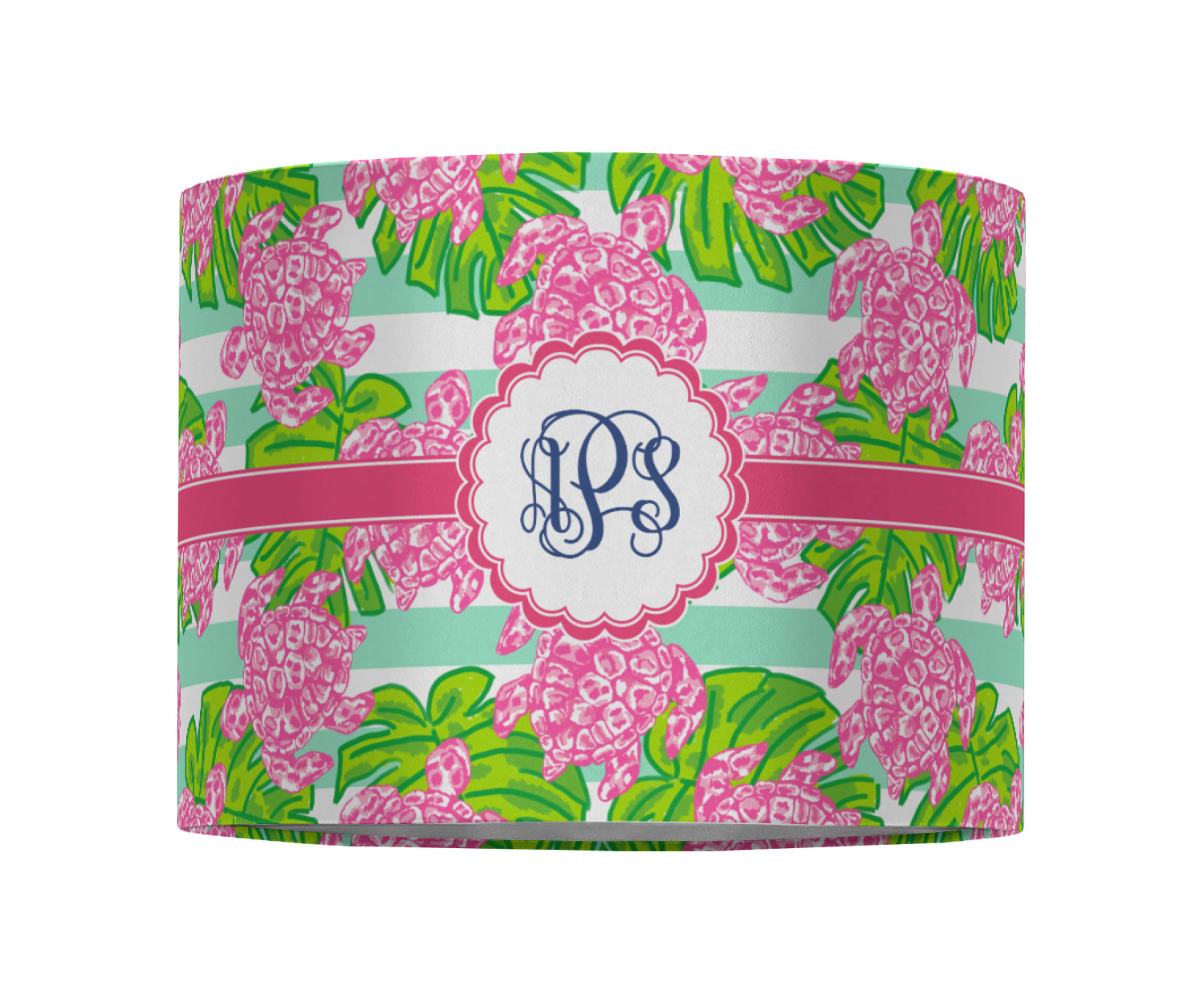 Looking for something Preppy? This design has gorgeous flashy pinks and greens and, of course, monograms! The main design is layered with mint & white stripes, beautiful green leaves and some adorable pink turtles. This will be the perfect design for a typical college girl!