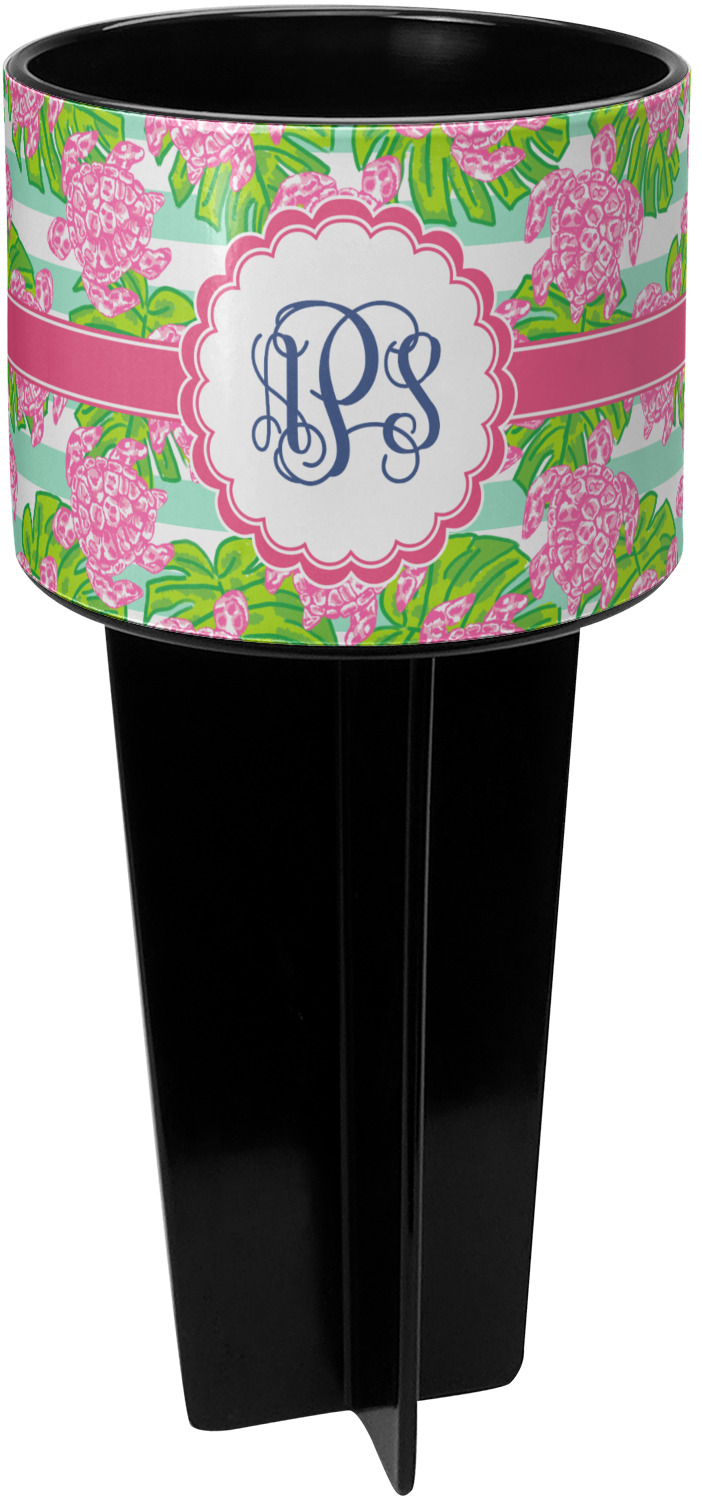 This cup holder has a large stake at its bottom that anchors it to the sand or ground below, while the cup holder rests above the stake. The entire drink holder is made of durable plastic and displays your customization around the cup holder portion. We sell these personalized beach spikers in two different colors: black and white.