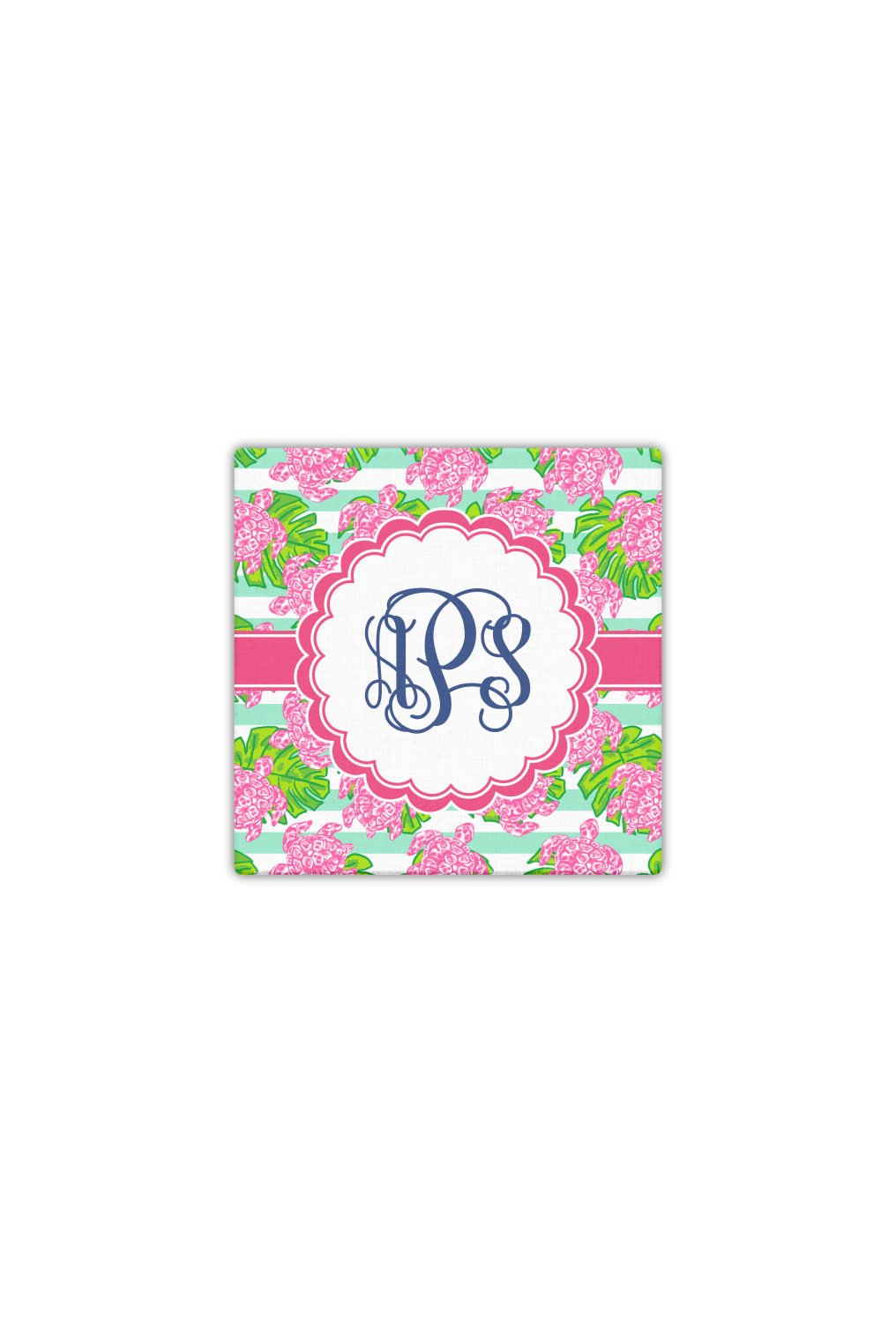 Looking for something Preppy? This design has gorgeous flashy pinks and greens and, of course, monograms! The main design is layered with mint & white stripes, beautiful green leaves and some adorable pink turtles. This will be the perfect design for a typical college girl!