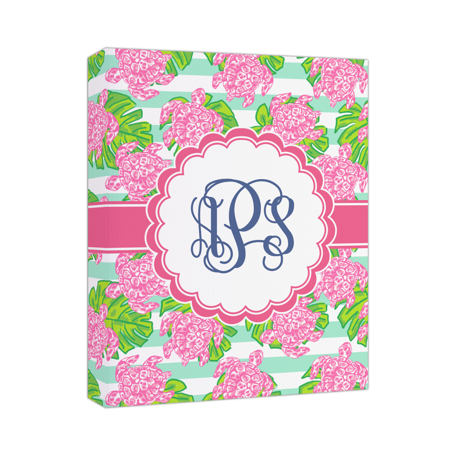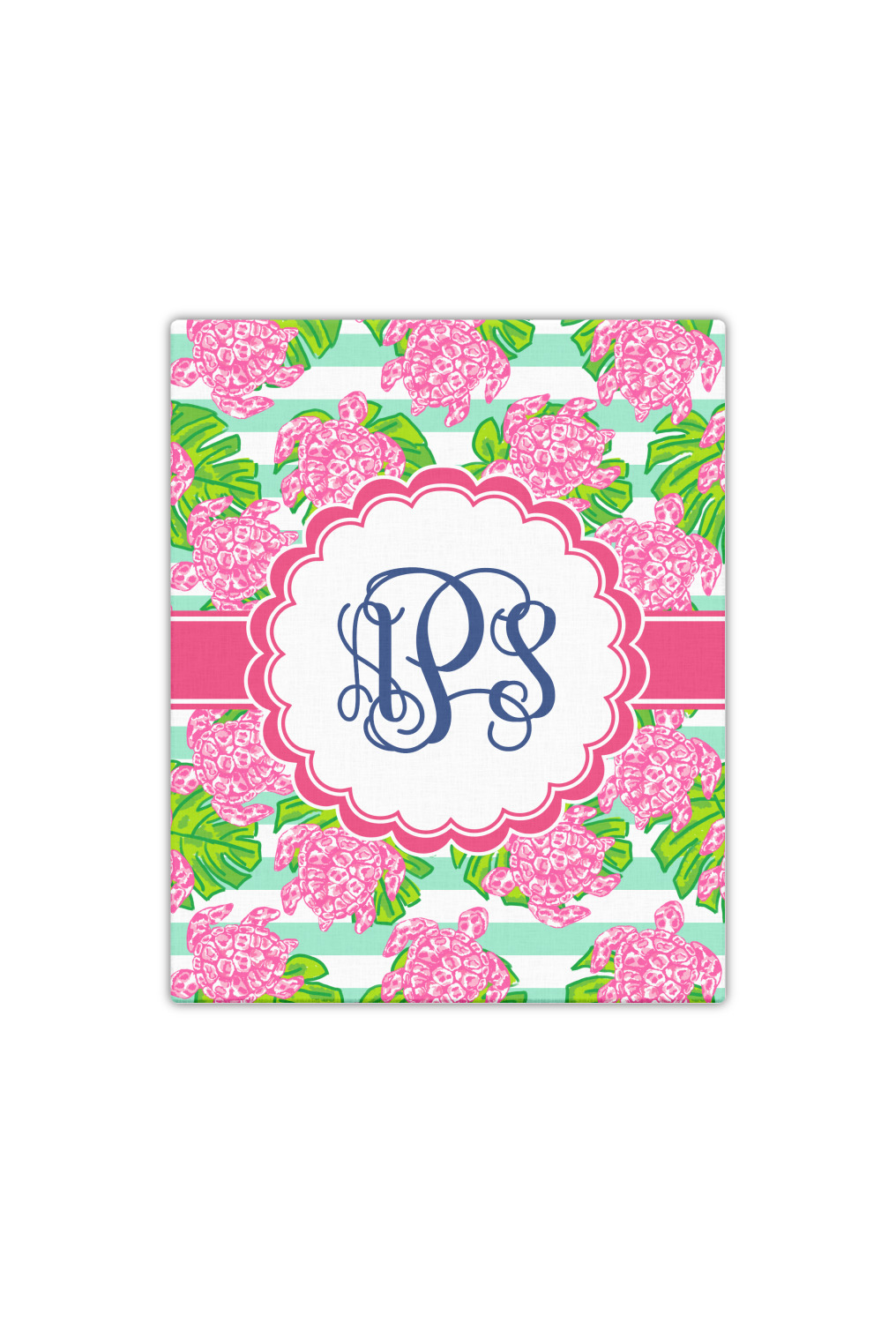 Looking for something Preppy? This design has gorgeous flashy pinks and greens and, of course, monograms! The main design is layered with mint & white stripes, beautiful green leaves and some adorable pink turtles. This will be the perfect design for a typical college girl!