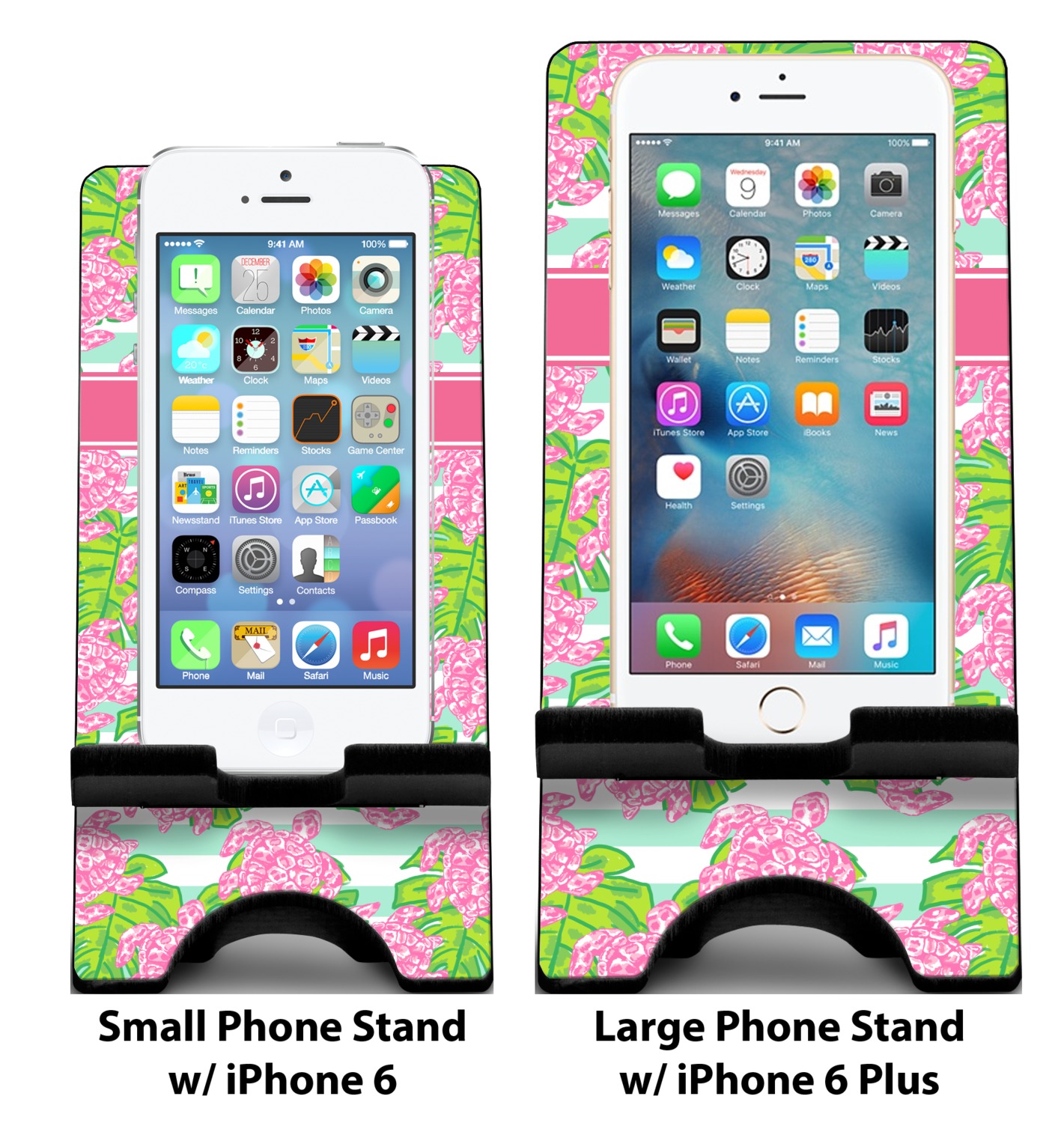 To meet your needs, we offer four variations of this IPhone stand. The backboard of the first version is shaped as a plain, yet sleek rectangle, and is available in two sizes. Our smaller size is approximately 4 by 3.25 by 7 inches, while the larger model is 4 by 3.77 by 8.5 inches. Alongside this model, we also provide you with a more decorative option. The upper part of our second version features a curved edge, for a classy, suave appearance. This phone holder is also sold in two sizes: a smaller version, which is 4 by 3.25 by 7 inches, and our larger model, which is 4 by 3.77 by 8.5 inches. Both models will support large phones, but the larger model is better if you wish to proudly display your personalized design.
