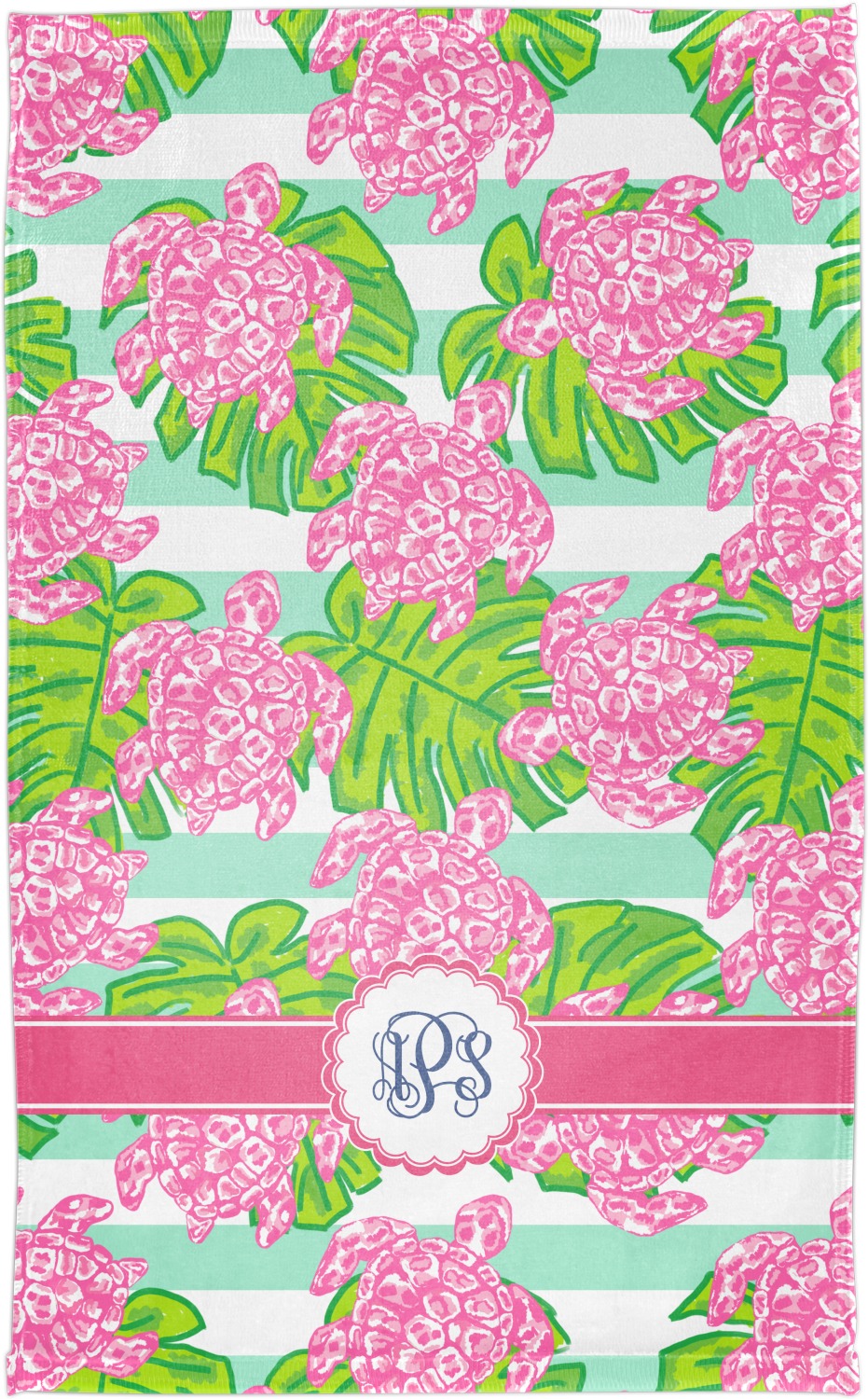 Looking for something Preppy? This design has gorgeous flashy pinks and greens and, of course, monograms! The main design is layered with mint & white stripes, beautiful green leaves and some adorable pink turtles. This will be the perfect design for a typical college girl!