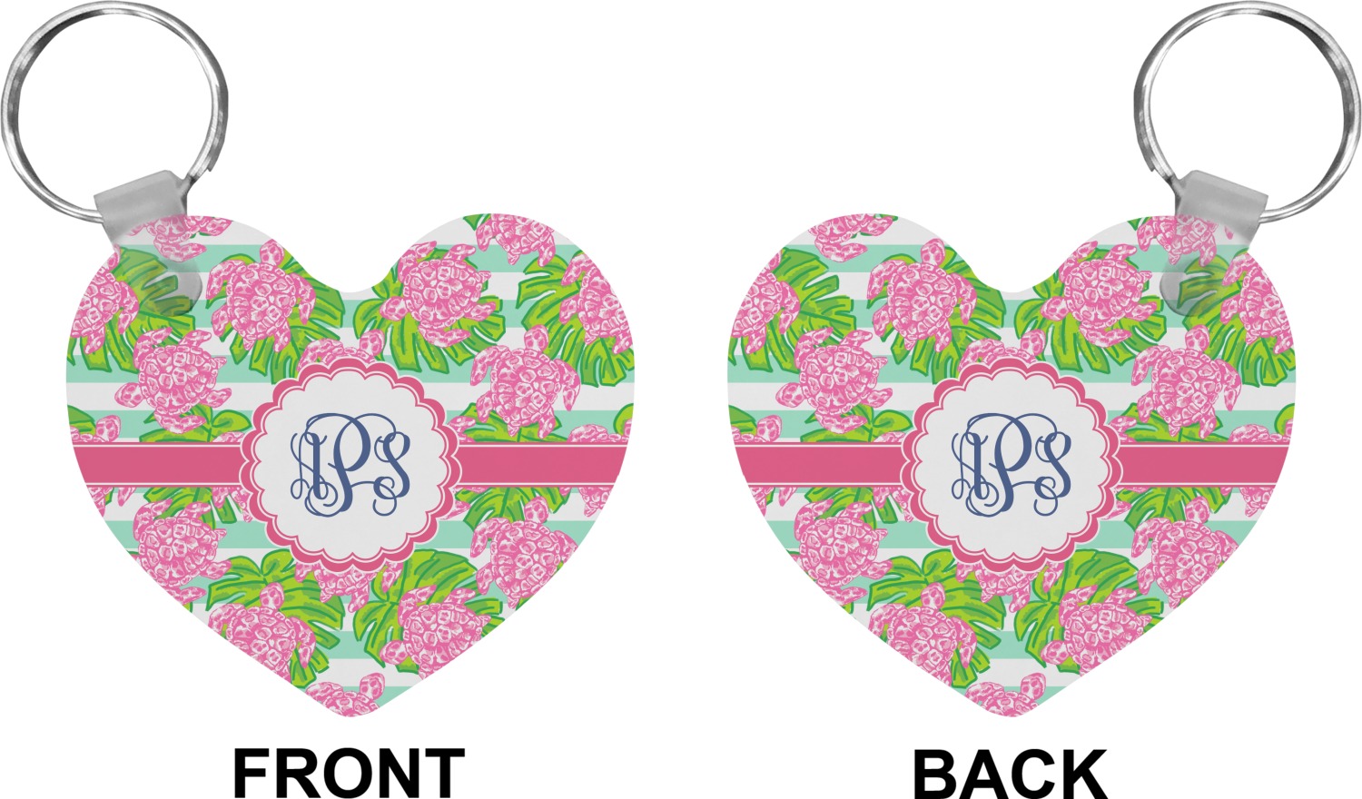 Our personalized keychains attach to the included metal, split key ring with a plastic, removable snap. Since a metal ring is included with your purchase, you have the liberty to keep your keys together on the ring, with or without your unique keychain. We offer this keychain in three different shapes: circle, heart, or diamond. We print your personalized design(s) on both sides of the key chain, and the surface has a glossy, reflective finish that only emphasizes your design. Each keychain is approximately 2.25 by 2.25 inches.
