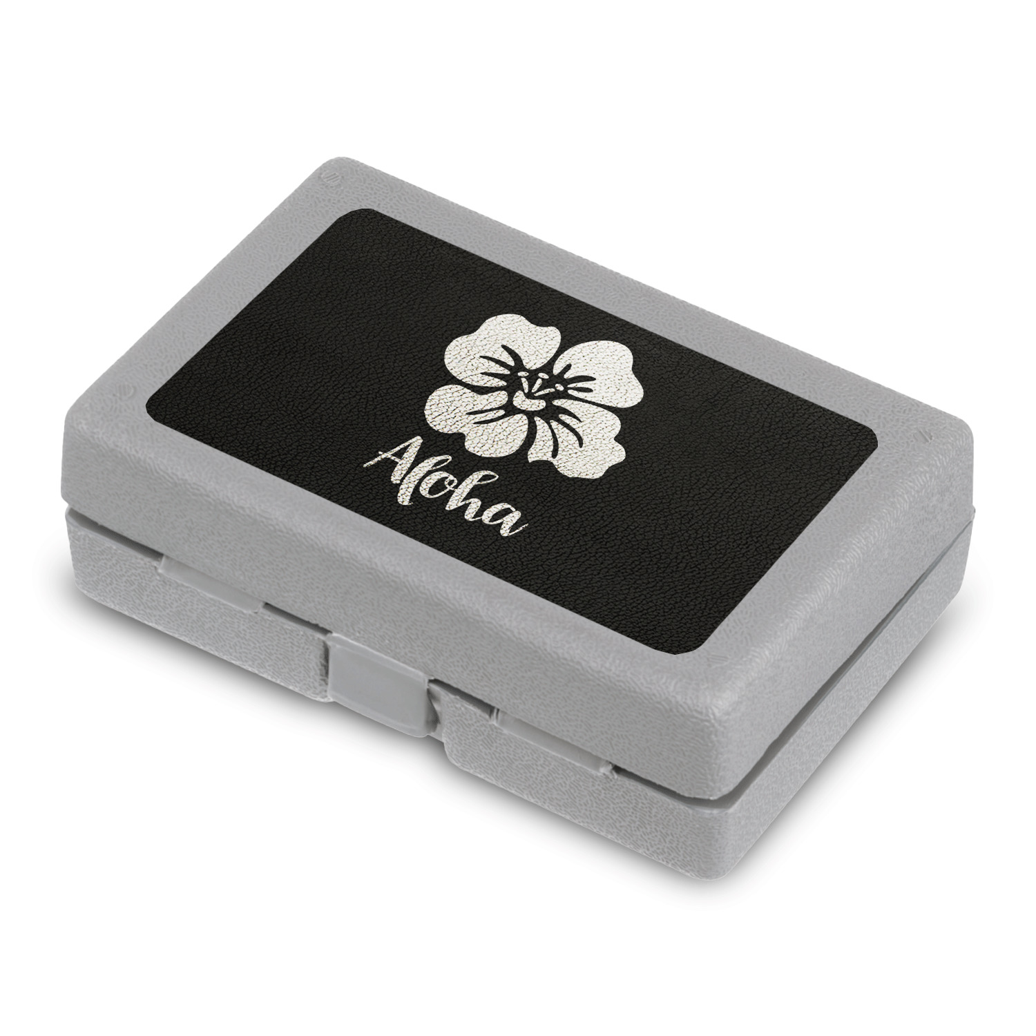 In a tri-fold hard shell case which measures 6" wide, 4" deep and 2" tall, this kit is the perfect size to keep in a desk, garage drawer, or anywhere else in the house. The snap closure keeps it securely closed to ensure the tools do not fall out. With the black faux leather on the outside engraved with your choice of personalization it will be easier to ensure it stays yours by being customized just for you!