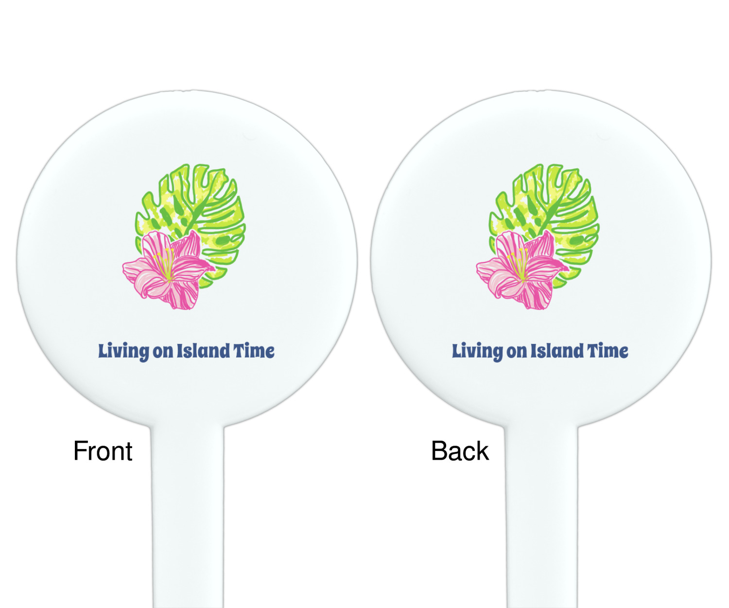The background is a mint and white Moroccan lattice with brightly colored hibiscus flowers and pineapples. A scalloped frame sits in the center of the design with a fun name and initial personalization. With all of the fun bright yellows, greens, and pinks, you will just fawn over this design.