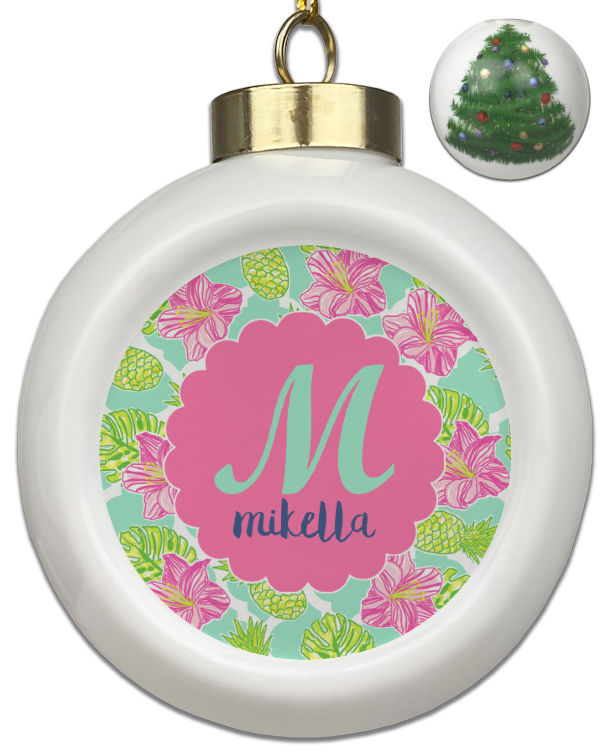 Our Christmas ornaments are a unique ceramic ball shape with a twist as it has a flat face to display your custom design! Select from one of our two design types - Christmas Tree or Poinsettia Garland - to adorn the curved back of your personal design. Each ornament measures 3H x 2.5W x 2D accompanied with a gold string accent for finishing touches to hang on your beautiful Christmas tree!