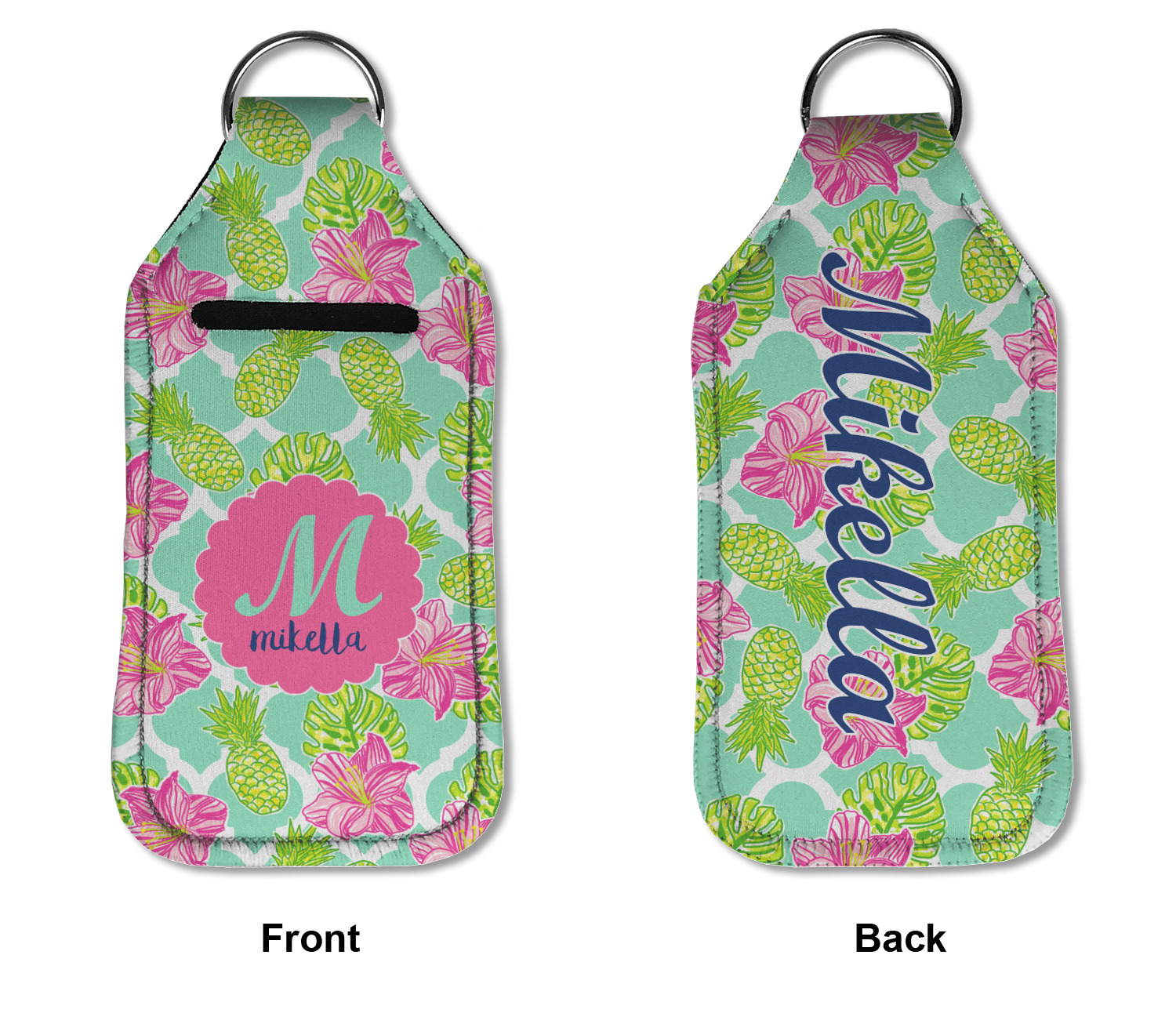 Each hand sanitizer holder comes with its own empty travel-sized, refillable hand sanitizer sure to fit snug in your customized sanitizer case! Our hand sanitizer cases are a durable, yet soft neoprene material sure to last any daily activities or travel agenda. Customize and personalize a hand sanitizer bottle holder with one of our two sizes - small (4.25" x 2.25") or large (5.5" x 2.5"). Each travel sanitizer holder comes with a keyring for attachment on bags, keys, or more!