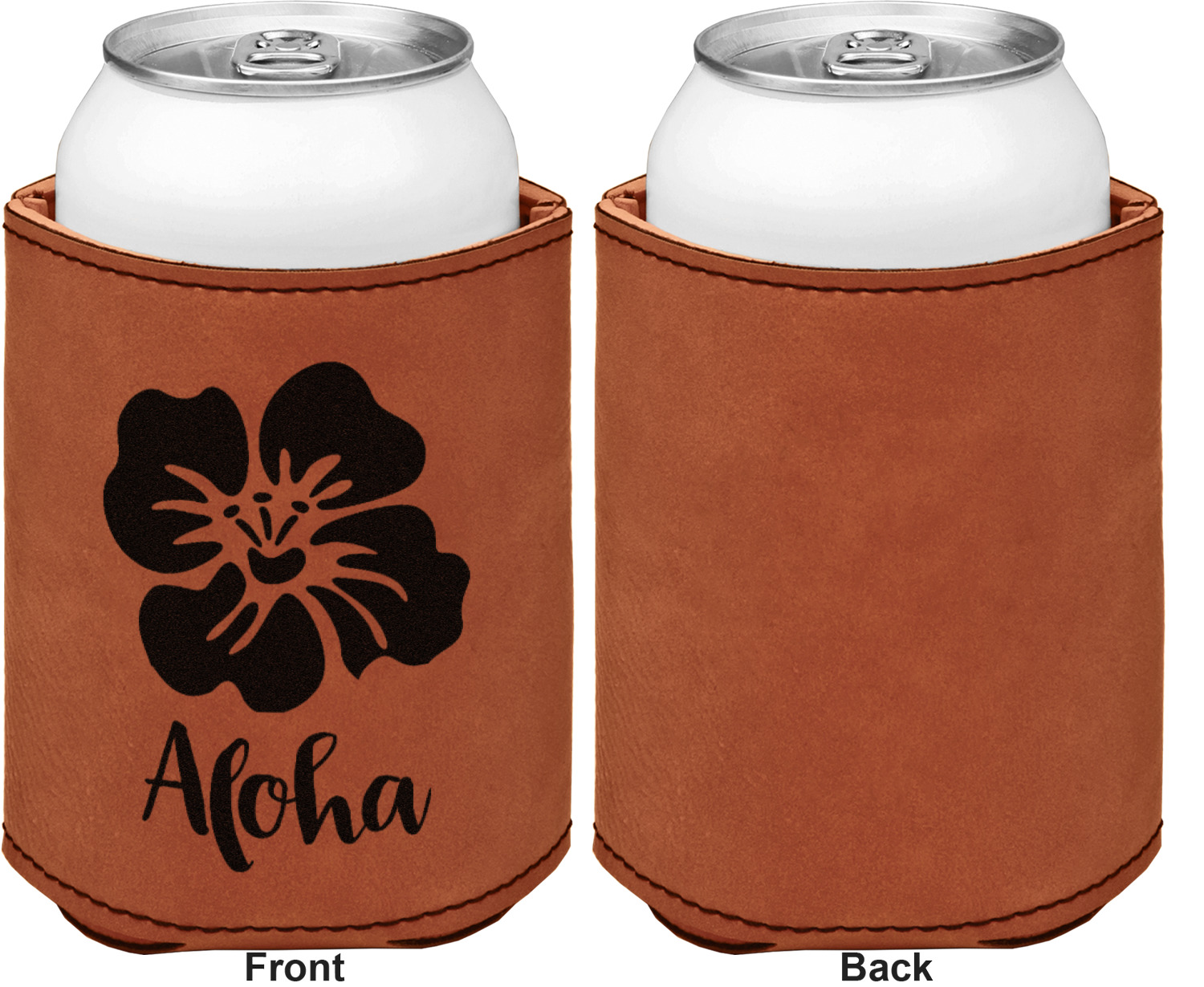This can sleeve is made from a cognac-brown leatherette and stitched with a sturdy, black thread. A slim padding lines the inside of your can sleeve to allow for a better fit once your drink is inserted. The sleeve itself measures at 4 by 4.5 inches, allowing this custom can sleeve to accommodate most canned drinks. Your personalized design can be engraved on the front and back, or solely the front. When laser-engraved, your design appears as a black coloration which contrasts the leatherette nicely.