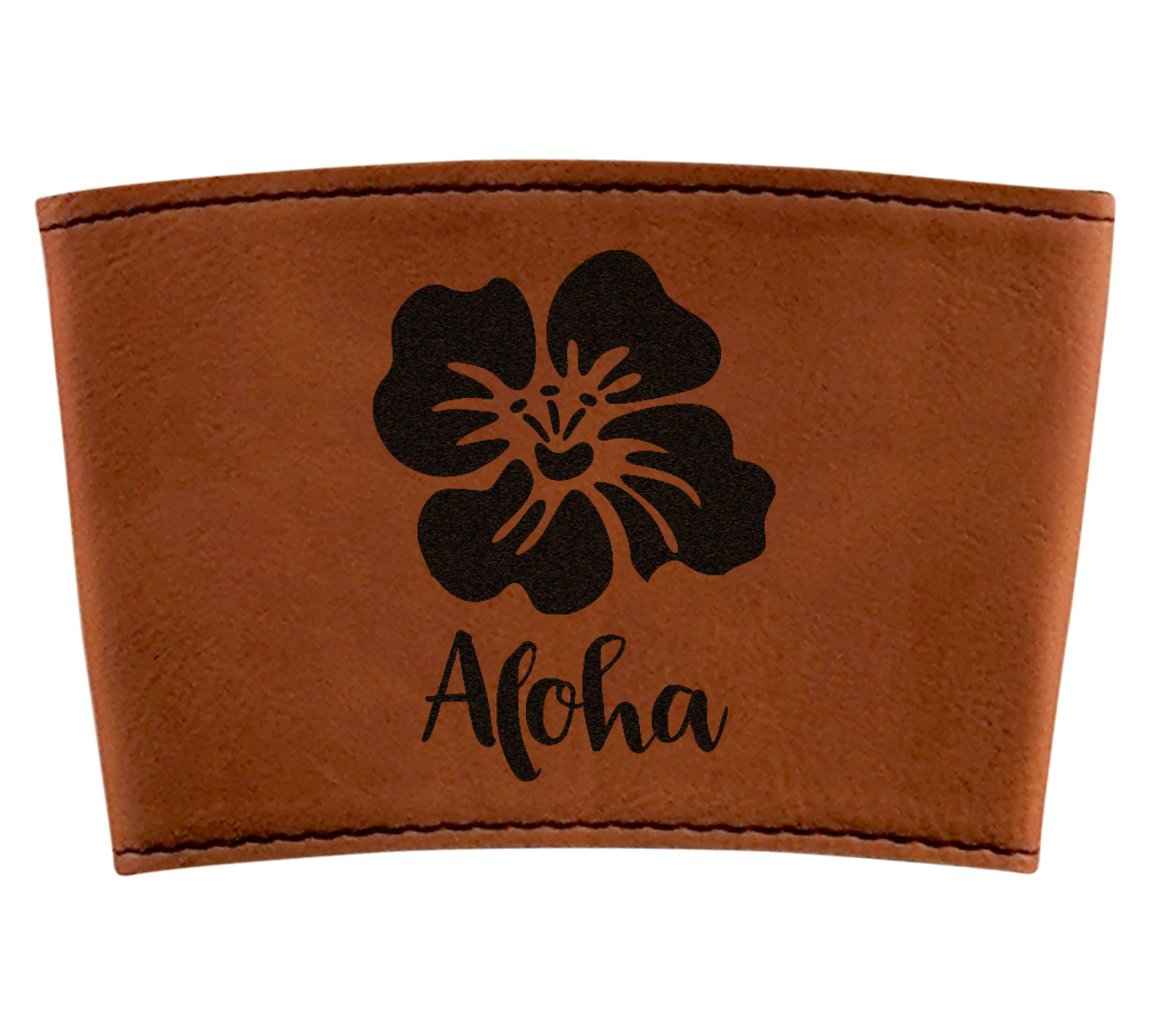 This cup sleeve is made from a suave, cognac-brown leatherette and finished with an intricate, black stitch. The interior of this can sleeve is fabricated from a thin foam material to help insulate your mug's contents. The sleeve is specifically made to suit tapered glasses or mugs, so the top's diameter is 3.5 inches, while the bottom's diameter is 2.75 inches. Your customized design will be laser engraved into the leatherette, leaving behind crisp, black imprint. With these products, we provide you with the option of engraving the front and back, or the front only.