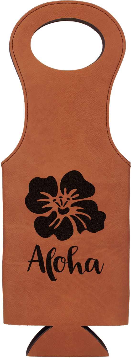 This wine carrier is made from a stunning leatherette, in a cognac-brown color. Strong, black stitching lines the sides of your wine bottle bag and provides extra durability. The interior is lined with a padded, black material to allow for a snug fit once your bottle is placed inside. At the top of this wine gift bag, you'll find two oval shaped handles that elegantly complements the rest of the bag's style. We provide you with the option of laser-engraving the front, or the front and back of your new personalized wine bag!