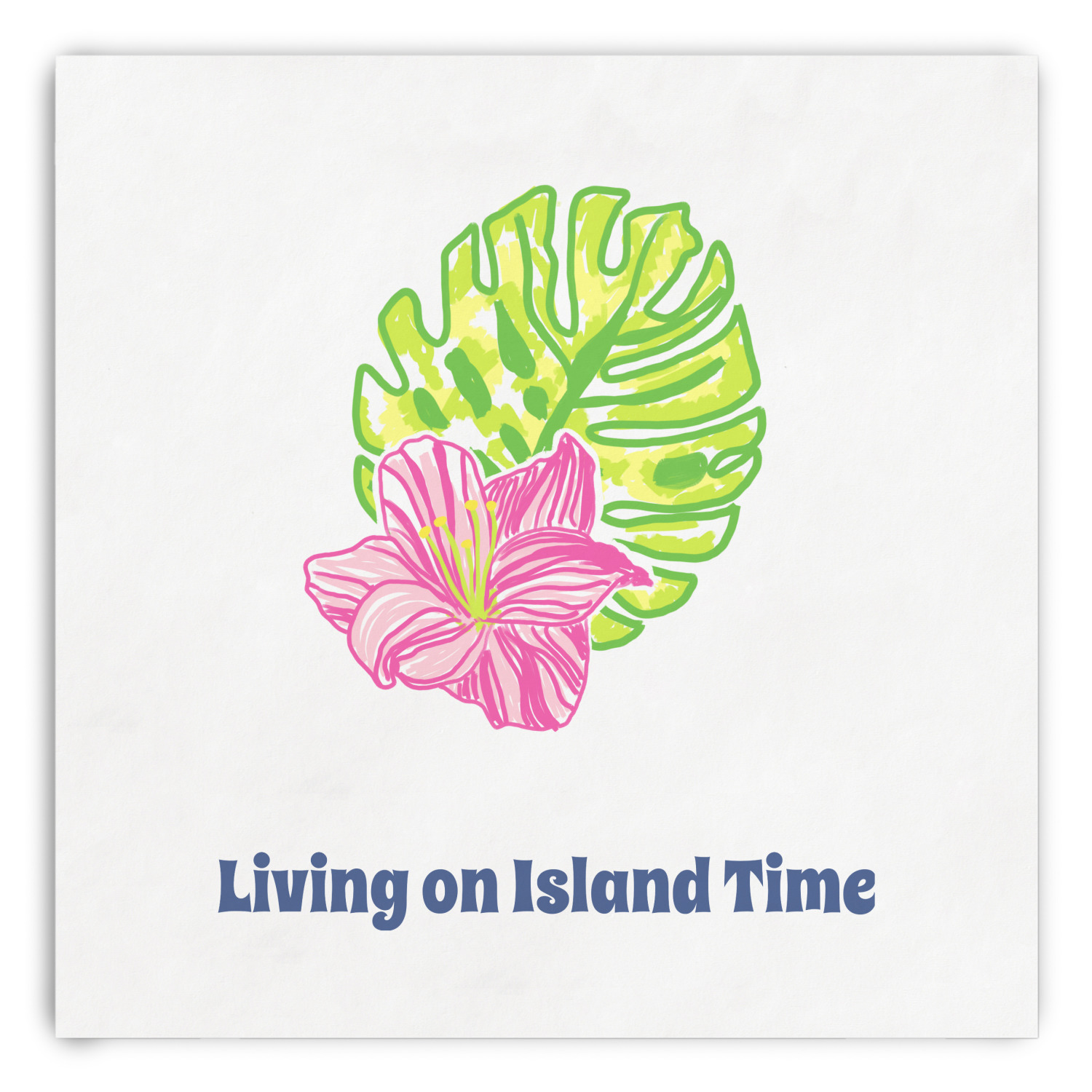 The background is a mint and white Moroccan lattice with brightly colored hibiscus flowers and pineapples. A scalloped frame sits in the center of the design with a fun name and initial personalization. With all of the fun bright yellows, greens, and pinks, you will just fawn over this design.