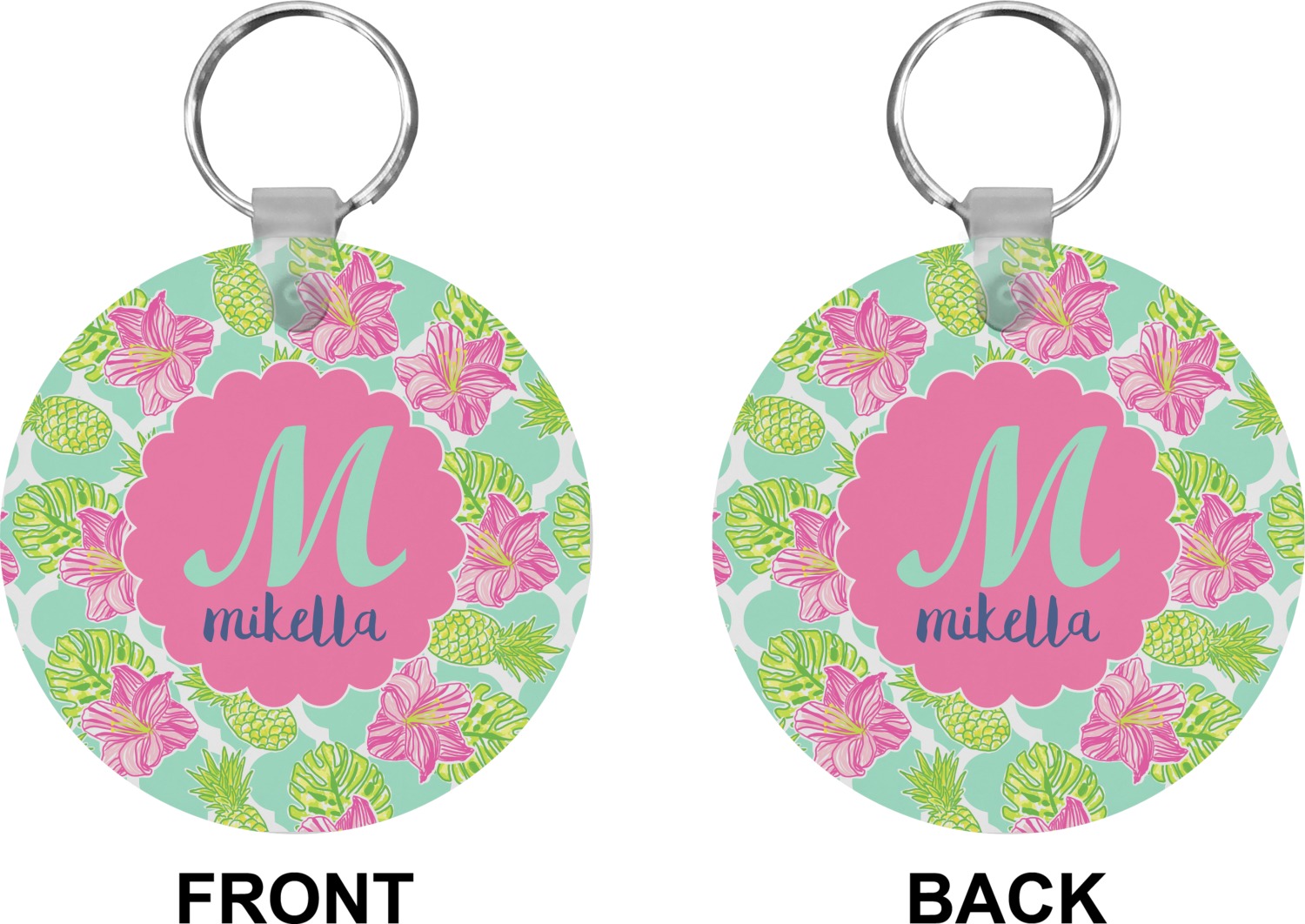 Our personalized keychains attach to the included metal, split key ring with a plastic, removable snap. Since a metal ring is included with your purchase, you have the liberty to keep your keys together on the ring, with or without your unique keychain. We offer this keychain in three different shapes: circle, heart, or diamond. We print your personalized design(s) on both sides of the key chain, and the surface has a glossy, reflective finish that only emphasizes your design. Each keychain is approximately 2.25 by 2.25 inches.