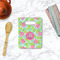 The background is a mint and white Moroccan lattice with brightly colored hibiscus flowers and pineapples. A scalloped frame sits in the center of the design with a fun name and initial personalization. With all of the fun bright yellows, greens, and pinks, you will just fawn over this design.