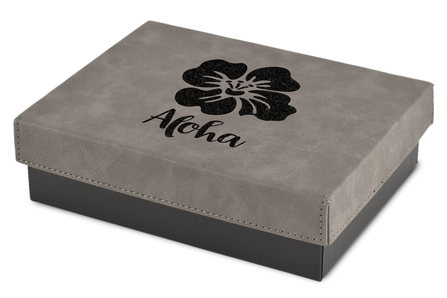 These gift boxes are available in 3 different sizes to accommodate various sized gifts. Available in gray as a neutral color for any occasion as well as to showcase your design boldly. Engraved with a laser this high quality paper board and faux leather gift box is unique and makes any gift stand out.