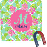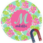 The background is a mint and white Moroccan lattice with brightly colored hibiscus flowers and pineapples. A scalloped frame sits in the center of the design with a fun name and initial personalization. With all of the fun bright yellows, greens, and pinks, you will just fawn over this design.