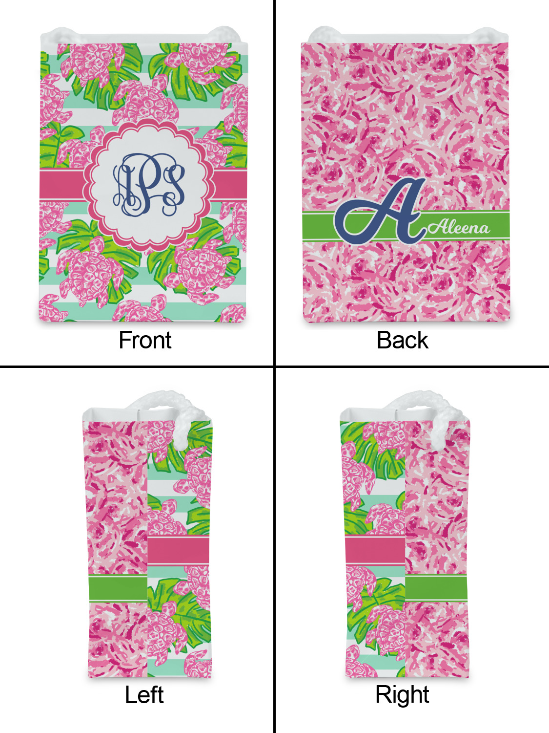 Looking for something Preppy? This design has gorgeous flashy pinks and greens and, of course, monograms! The main design is layered with mint & white stripes, beautiful green leaves and some adorable pink turtles. This will be the perfect design for a typical college girl!